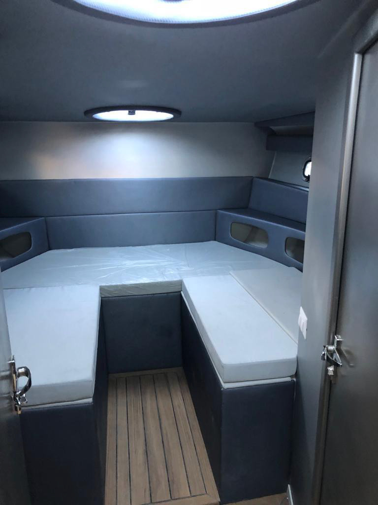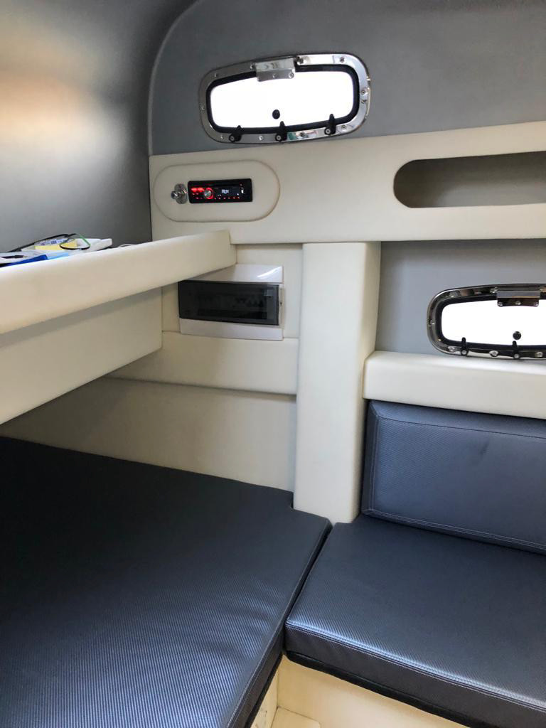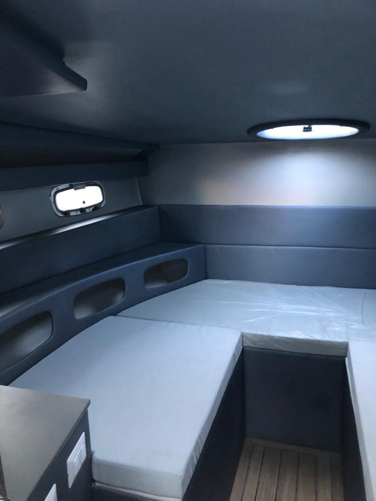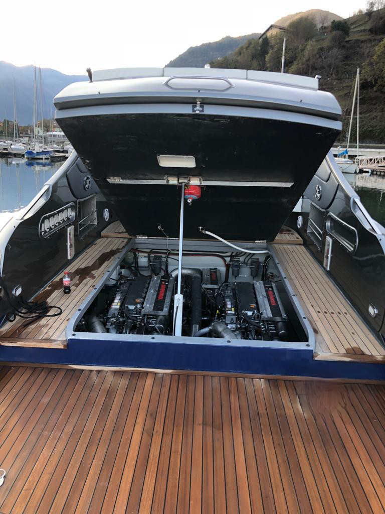 Équipements : générateur, chargeur de batteries, climatisation, eau chaude, réfrigérateur, TV écran plat, GPS, traceur, pilote automatique, VHF, sondeur, système audio avec haut-parleurs de cockpit.