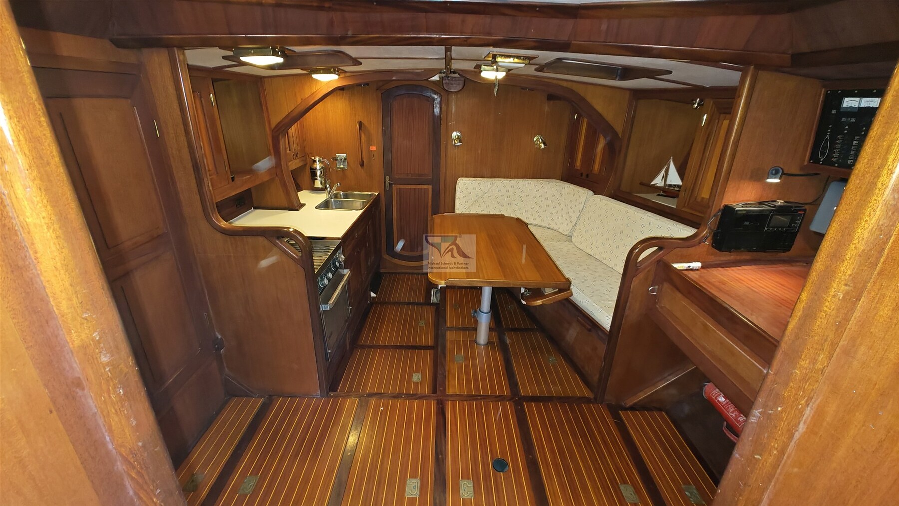 The legendary Feltz aluminium one-tonner: Kühnezug Goldkatze 41 was converted into a smart cruising yacht inside in 1992. On the outside, the look of a racing yacht has been preserved, as has the rig, so the sailing characteristics are still impressive.