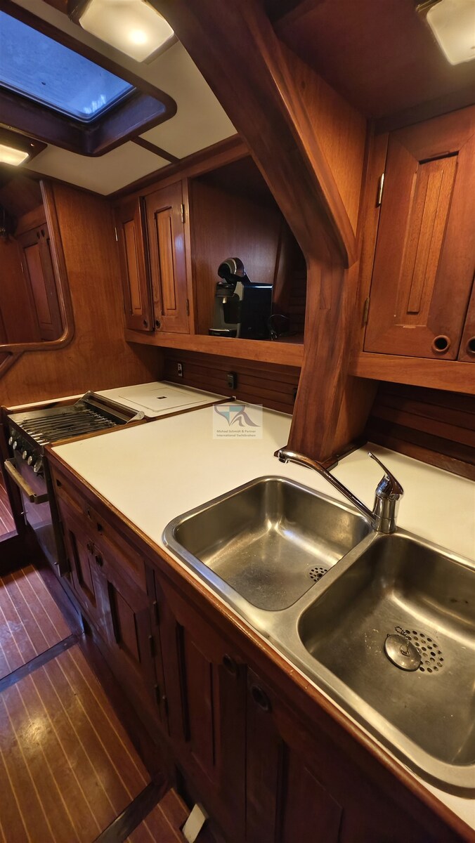 Il leggendario monotonnello in alluminio Feltz: Kühnezug Goldkatze 41 è stato trasformato in uno yacht da crociera intelligente all'interno nel 1992. All'esterno, l'aspetto di uno yacht da regata è stato preservato, così come l'attrezzatura, quindi le caratteristiche di navigazione sono ancora impressionanti.