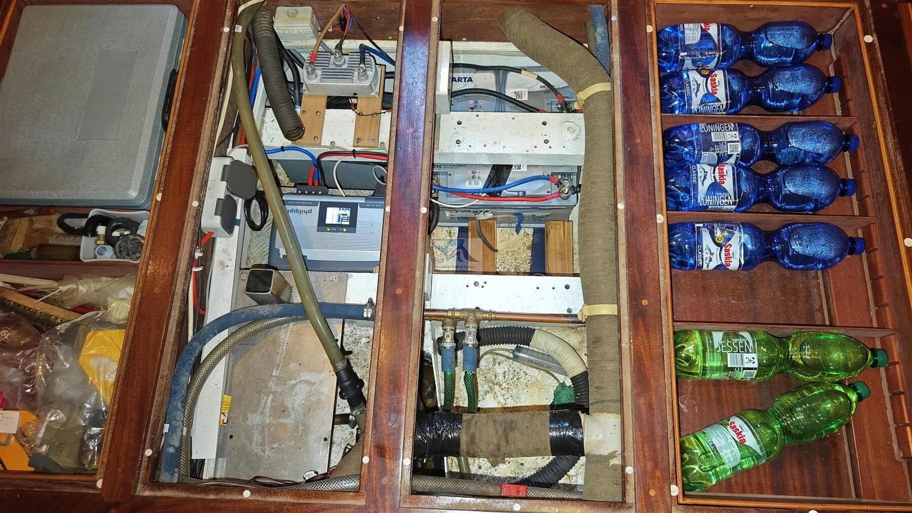 Warmwater boiler, Fecaliëntank, 12V Stopcontacten, 230V Stopcontacten, Handmatige toilet.