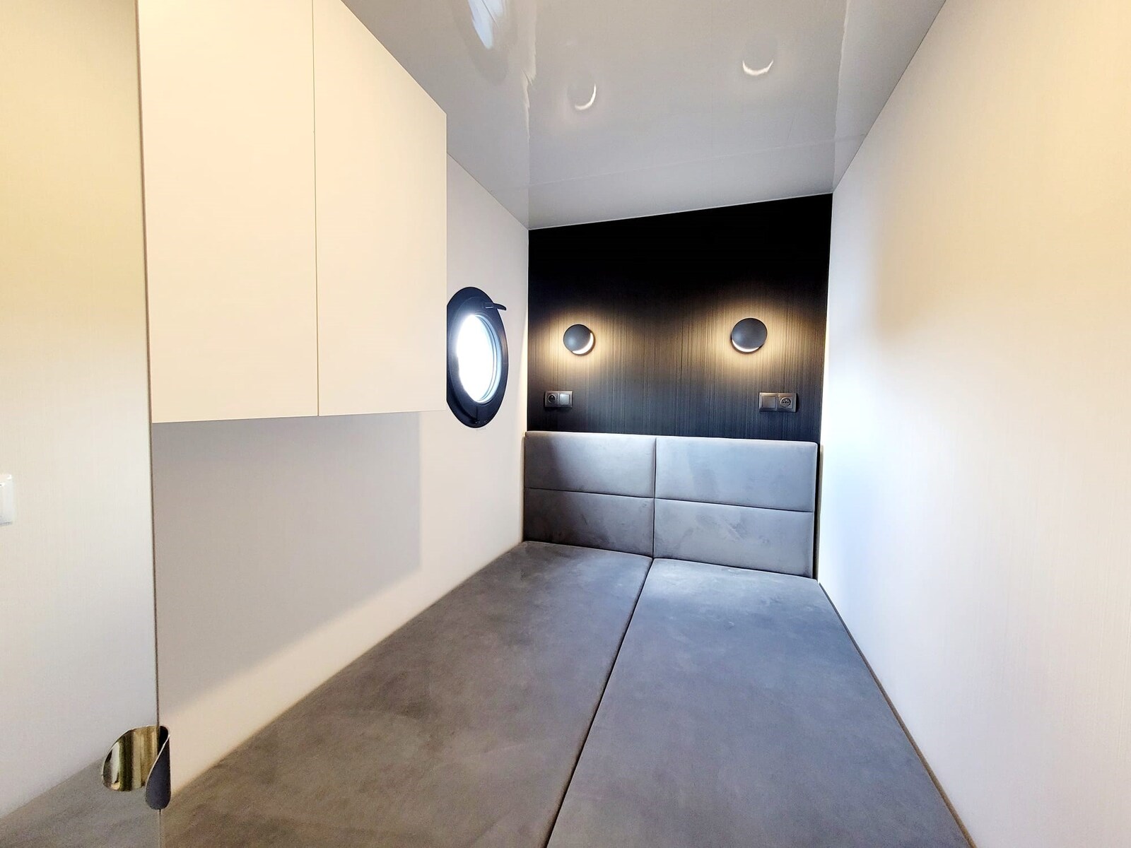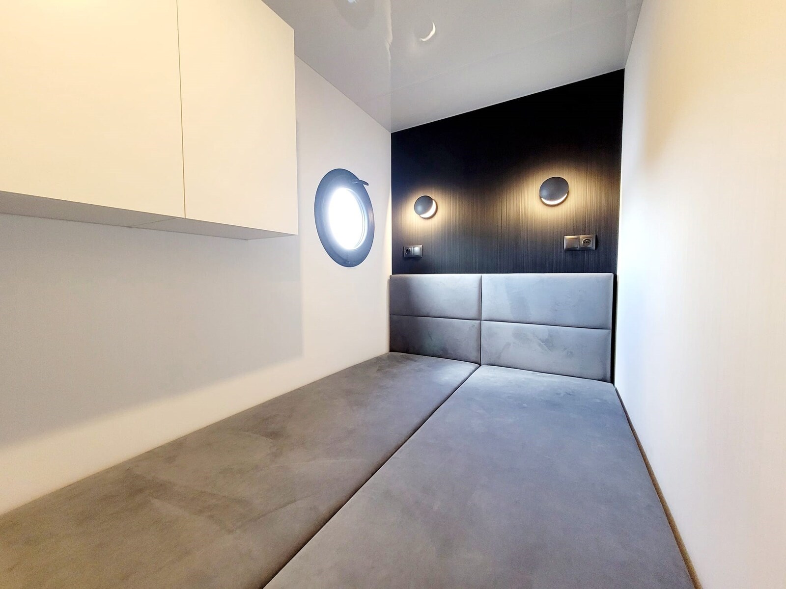 Окна: алюминиевая рама, усиленное двойное остекление, раздвижные двери на носовую террасу, 2 x фиксированное окно, 2 x
