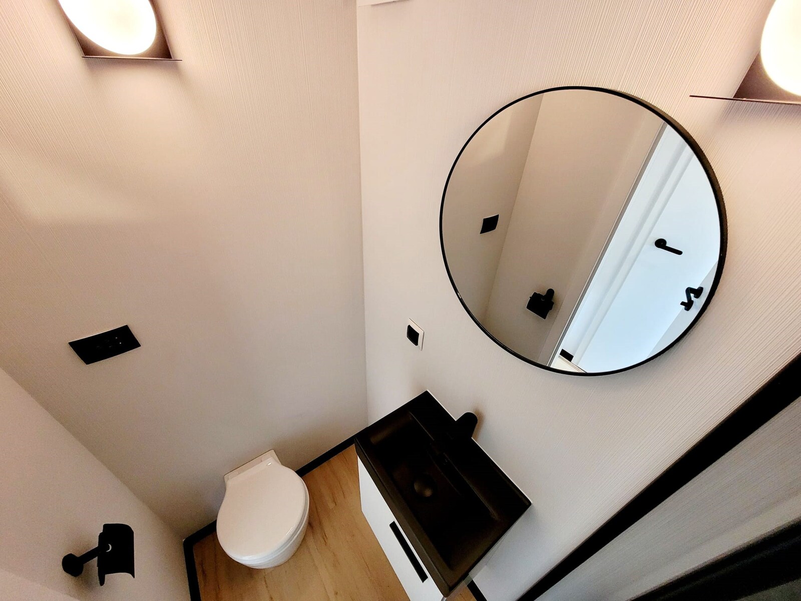 Toilet: toilet met beluchter, douche, wastafel, elektrische ventilator