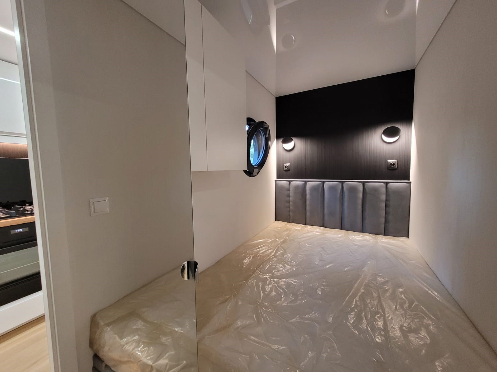 Окна: алюминиевая рама, усиленное двойное остекление, раздвижные двери на носовую террасу, 2 x фиксированное окно, 2 x