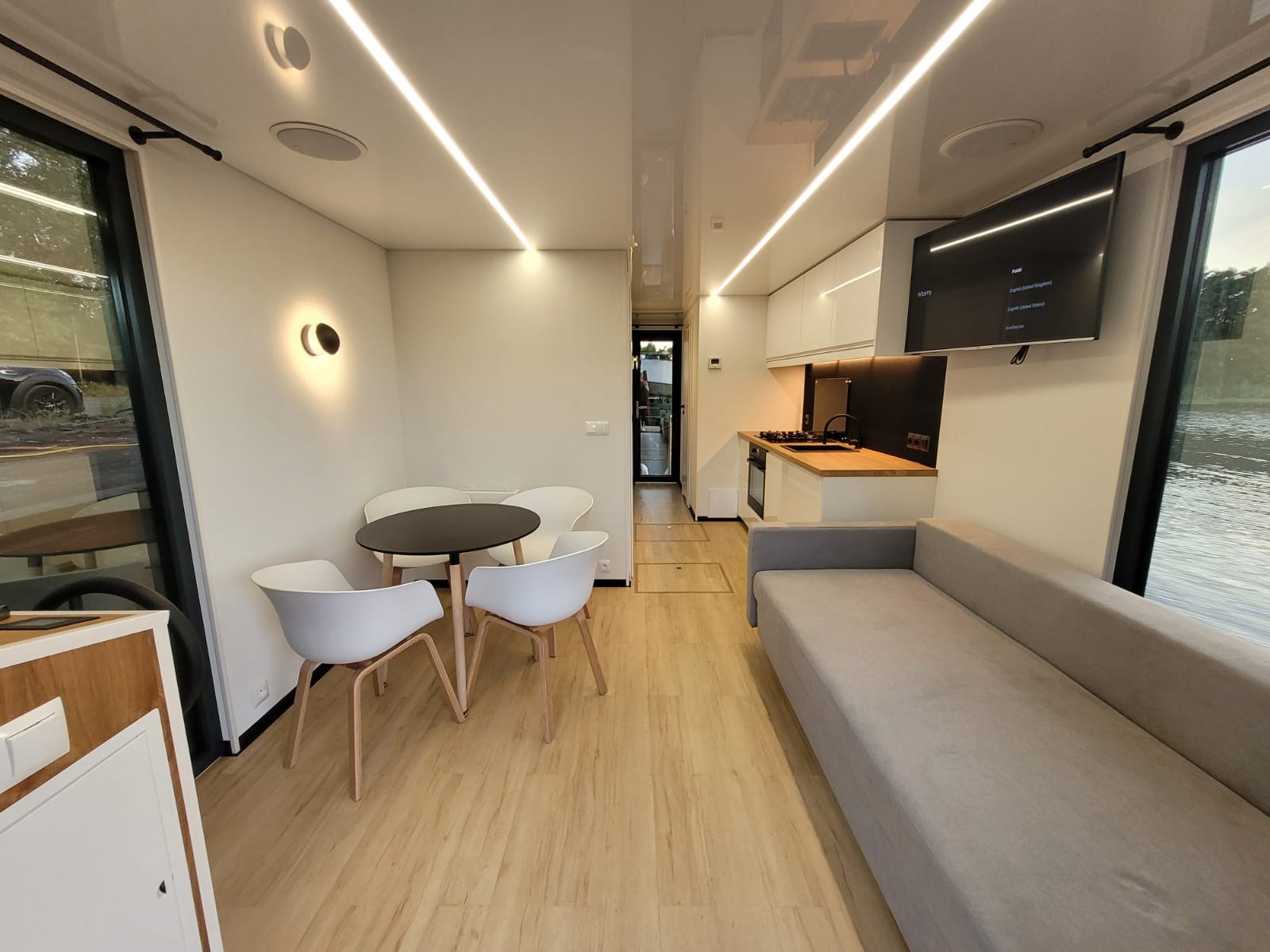 Piso: placa de cubierta galvanizada, membrana, aislamiento PUR, madera contrachapada impermeable, piso de PVC.