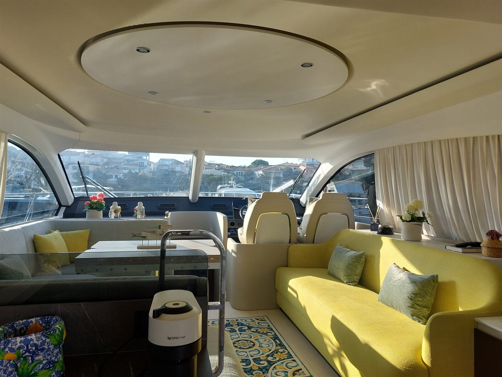 A bordo del fly 53, un ambiente aireado evoca una sensación de libertad innata y un estilo de vida relajado, que se adaptan bien a las familias dinámicas que buscan nuevos horizontes. Espacios elegantes, cuidados y confortables inspiran una sensación de bienestar y amabilidad, dando un nuevo significado a los conceptos de espacio y estilo. Con gran facilidad y naturalidad, los huéspedes podrán experimentar los interiores de altura completa, mientras disfrutan de una sorprendente perspectiva del mar. El diseñador Alberto Mancini ha diseñado formas elegantes y ligeras, conservando interiores increíblemente generosos, realzados aún más por la atmósfera íntima y armoniosa, que es la base de toda la filosofía del barco, interpretada magistralmente por Achille Salvagni. El flybridge más premiado de la historia para el diseño de interiores y exteriores le está esperando, para una experiencia de navegación extraordinaria.