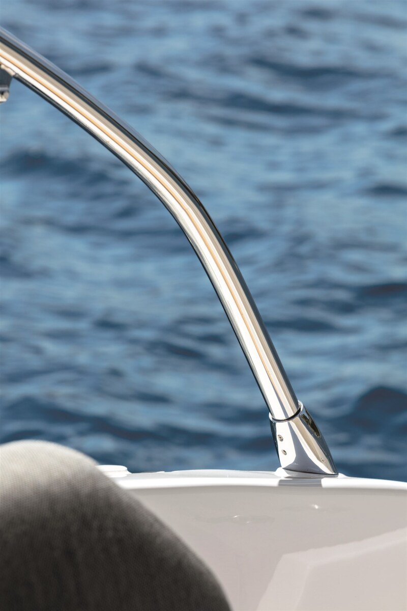 2 Alarme moteur, Trim hydraulique, Phares fixes arrière, Phare de poursuite (manuale), Flaps électriques (Auto dynamic Volvo Inteceptors), Garage à annexe (con apertura idraulica), Hard top (apribile), Extincteur(s) fixe(s), Indicateurs de flaps, Lavage de chaine, Éclairage de courtoisie, Passerelle (elettroidraulica), Plateforme arrière (elettroidraulica), 3 Pompe de cale automatique, Porte latérale, Cockpit en teck, Prise de quai, Connexion eau sous pression à quai, Onduleur, Guindeau électrique, Echelle de bain, Filières avec sortie latèrale, Corne, Winch électrique avant.