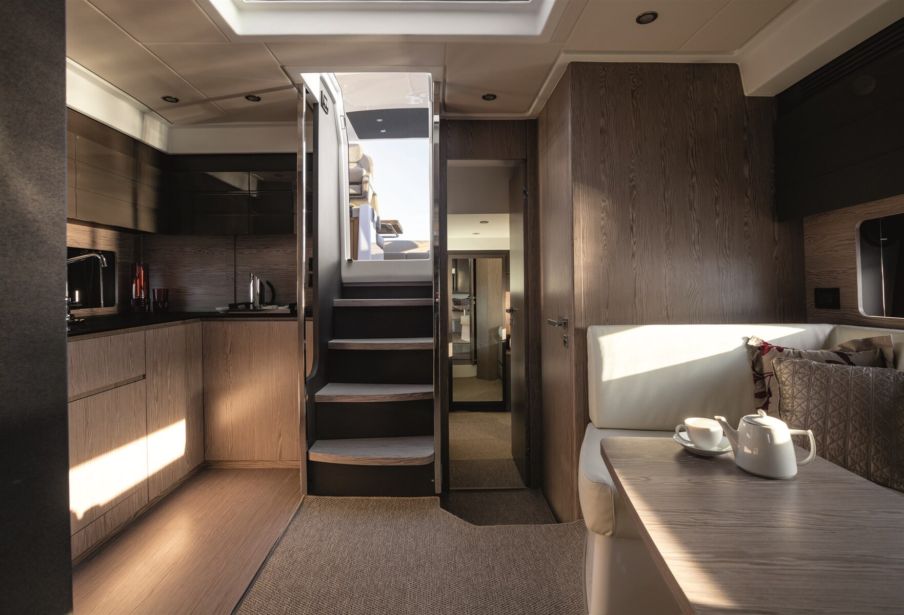 Galley, Deck Refrigerator, Microwave Oven (combi), Ceramic hot plate.