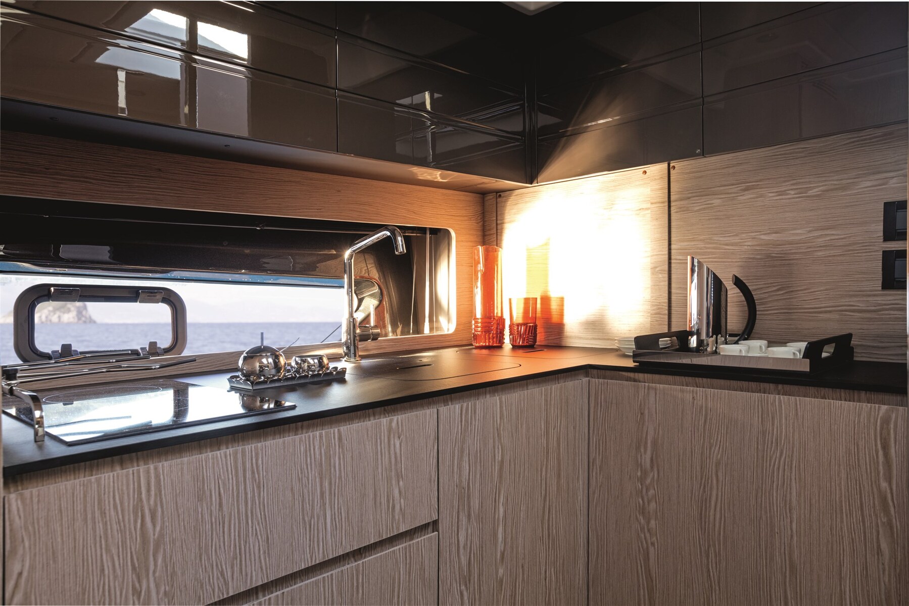 2 Motor Alarm, Automatische trim, Zoeklicht geïnstalleerd op spiegel, Verstelbaar zoeklicht (manuale), Elektrische trimflappen (Auto dynamic Volvo Inteceptors), Tender (bijboot) garage (con apertura idraulica), Hardtop (apribile), Brandblussysteem, Trimflappen indicatoren, Anker (ketting) spoelsysteem, Sfeerverlichting, Loopplank (elettroidraulica), Platform (elettroidraulica), 3 Automatische bilgepomp, Ingangsdeur, Teak in kuip, Walaansluiting 230V, Walaansluiting voor water, City-/Water-connection, Gelijkrichter, Elektrische ankerlier, Zwemtrap, Zeereling met opening, Hoorn, Boeglier.