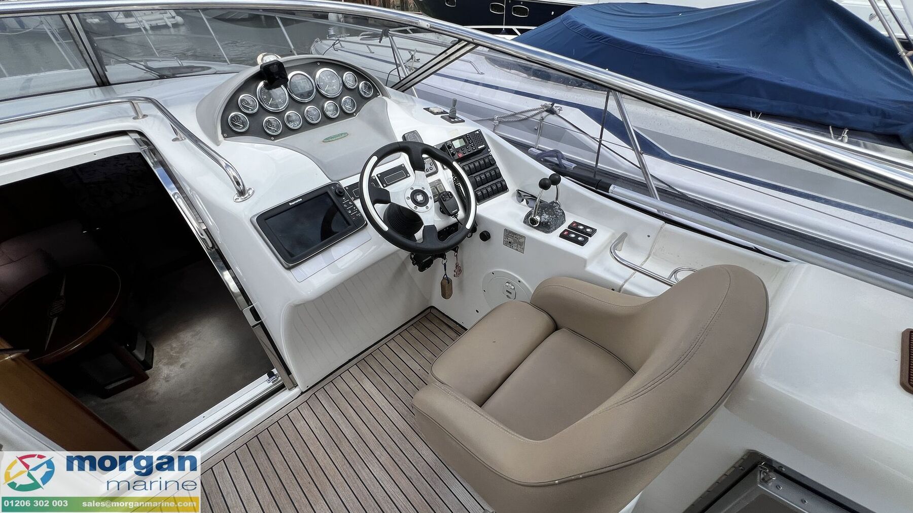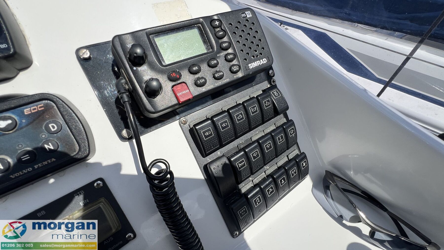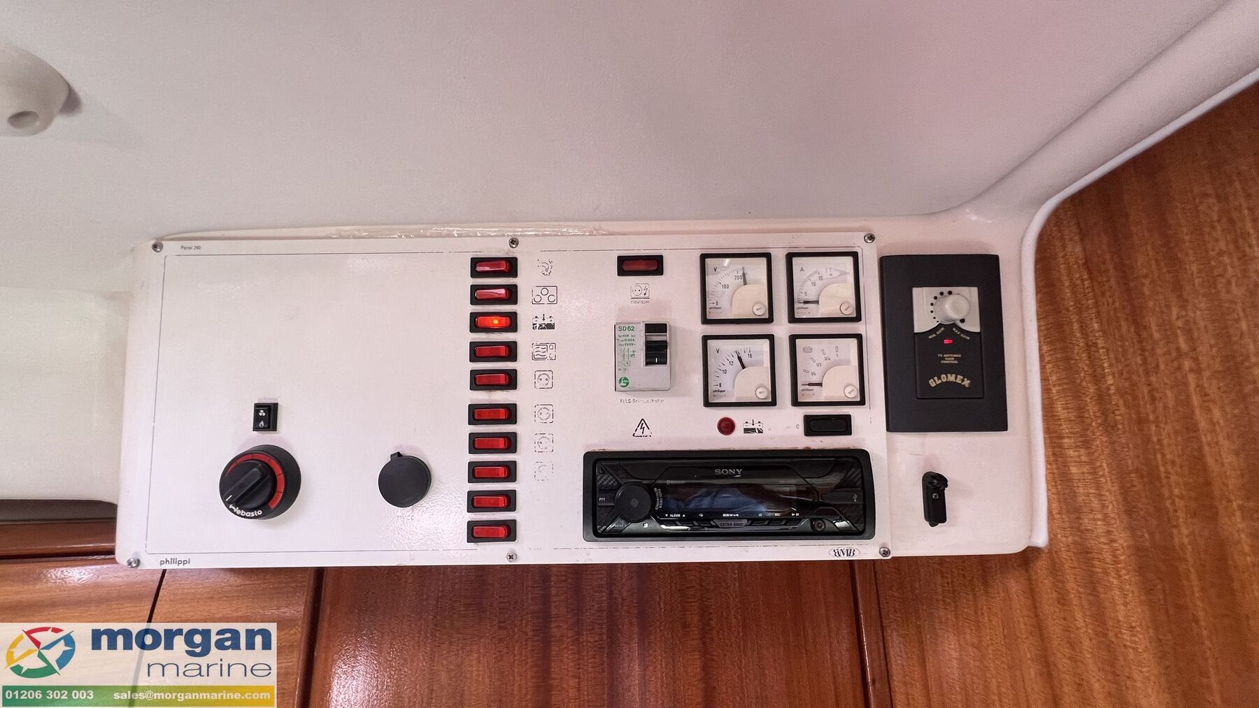 Electronics: Raymarine chart plotter. Simrad RS12 VHF radio. Navigation lights. Anchor light. Horn. Electric windscreen wipers. Engine gauges (oil, volt, temperature, MPH, trim, fuel tank). Bidata depth and speed. Glomex TV antenna. Sony radio. Shore power.