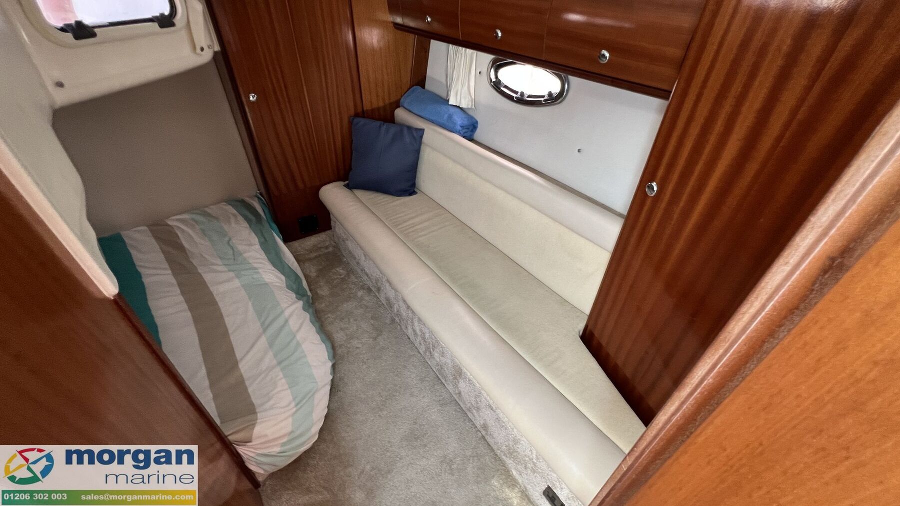 2004 Bavaria 37 Sport - offering exceptional value for money you can experience the perfect blend of style, performance, and comfort with this clearly cherished example, powered by twin KAD 300 P-EDC Volvo inboard diesel engines with DPG stern drives, she has accrued circa 830 hours to date. Capable of reaching exhilarating speeds of up to 39 knots and cruising effortlessly at 30 knots, this dynamic sports cruiser is built to impress. On deck, enjoy the spacious and sociable layout with generous seating and lounging areas, complemented by a sleek GRP arch and sunshade – ideal for entertaining or relaxing in style. The cockpit features a galley with fridge for refreshments on hand, and the well-appointed galley includes hot water for convenience. Step below deck into a surprisingly roomy yet cosy interior. "No Xcuse" offers comfortable accommodation for four across two private cabins, making it ideal for weekend getaways or extended cruising. Equipped with premium features including a Raymarine chart plotter, Simrad RS12 VHF radio, shore power connection, Webasto diesel heating and a full heads, this vessel combines practicality with luxury. Elegant, powerful, and thoughtfully designed throughout, this Bavaria 37 Sport is a true head-turner on the water. With only 2 owners from new she has been in current ownership for over 11 years, serviced annually and very well maintained. Contact Morgan Marine today to arrange your viewing!
