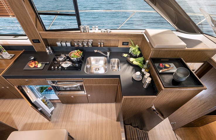Galley, Deck Refrigerator, Icebox, Coffee Machine.