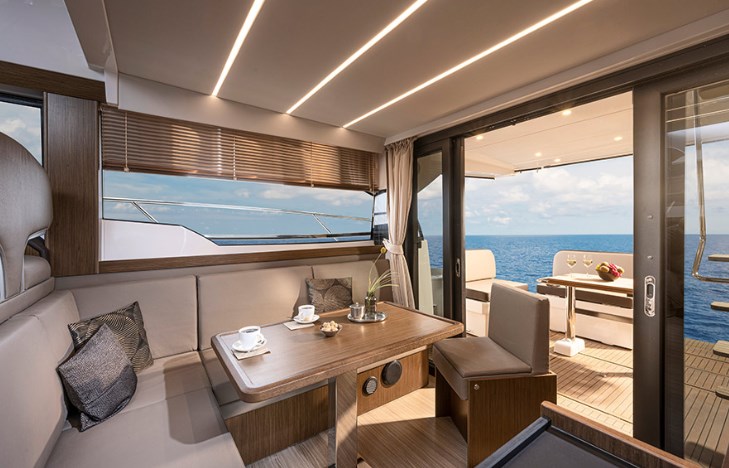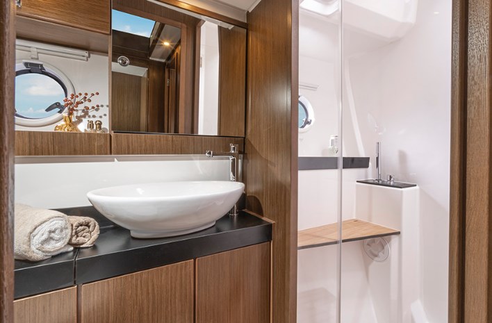Кондиционер (32000 BTU), котлом (bivalente), безопасный, Установка климат реверс, Диммер света, Деревянный пол в интерьере, Внутренние розетки 12v, Внутренние розетки 220v, 2 Электрический морской туалет.