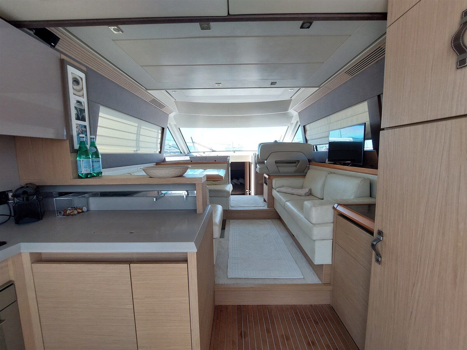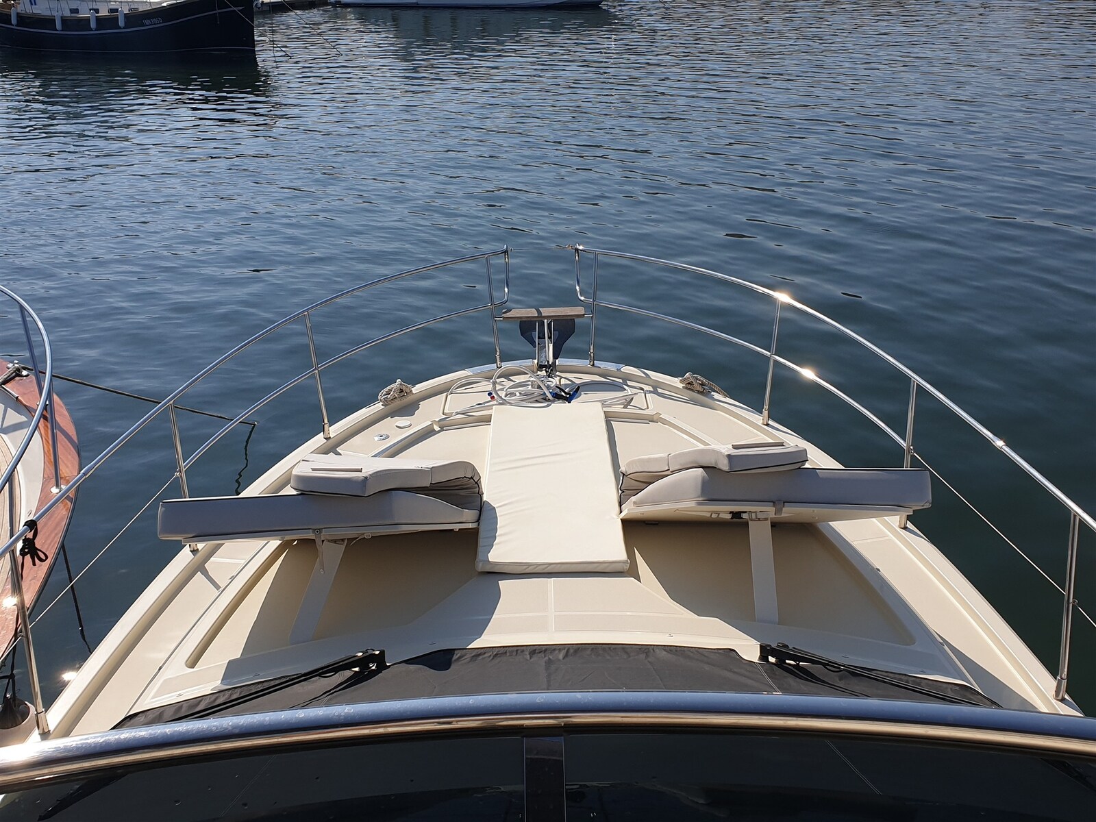 Rook-/gasmelder, 2 Motor Alarm, Bilge Alarm, Waterdruk systeem, Buitendouche, Dubbele besturing, Zoeklicht geïnstalleerd op spiegel, Elektrische trimflappen, 2 Trimflappen indicatoren, Anker (ketting) spoelsysteem, Wasbak in de kuip, Sfeerverlichting, Loopplank, Platform, Automatische bilgepomp, 2 Elektrische bilgepomp, Handmatige bilgepomp, Ingangsdeur, Teak in kuip, 2 Walaansluiting 230V (230 V - 50 Hz 63A con cavo di 15m), Walaansluiting voor water, City-/Water-connection, Elektrische ankerlier, Zwemtrap, Kuiptafel, Opklapbare salontafel, Bijboot, Hoorn, Hek lier, Boeglier.