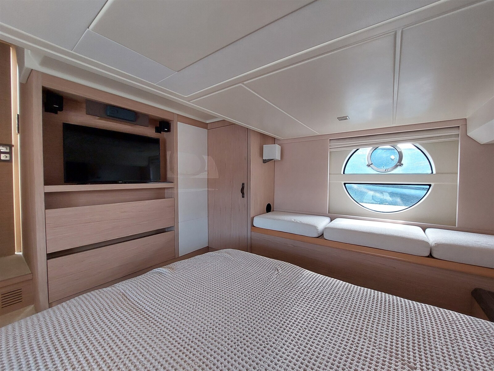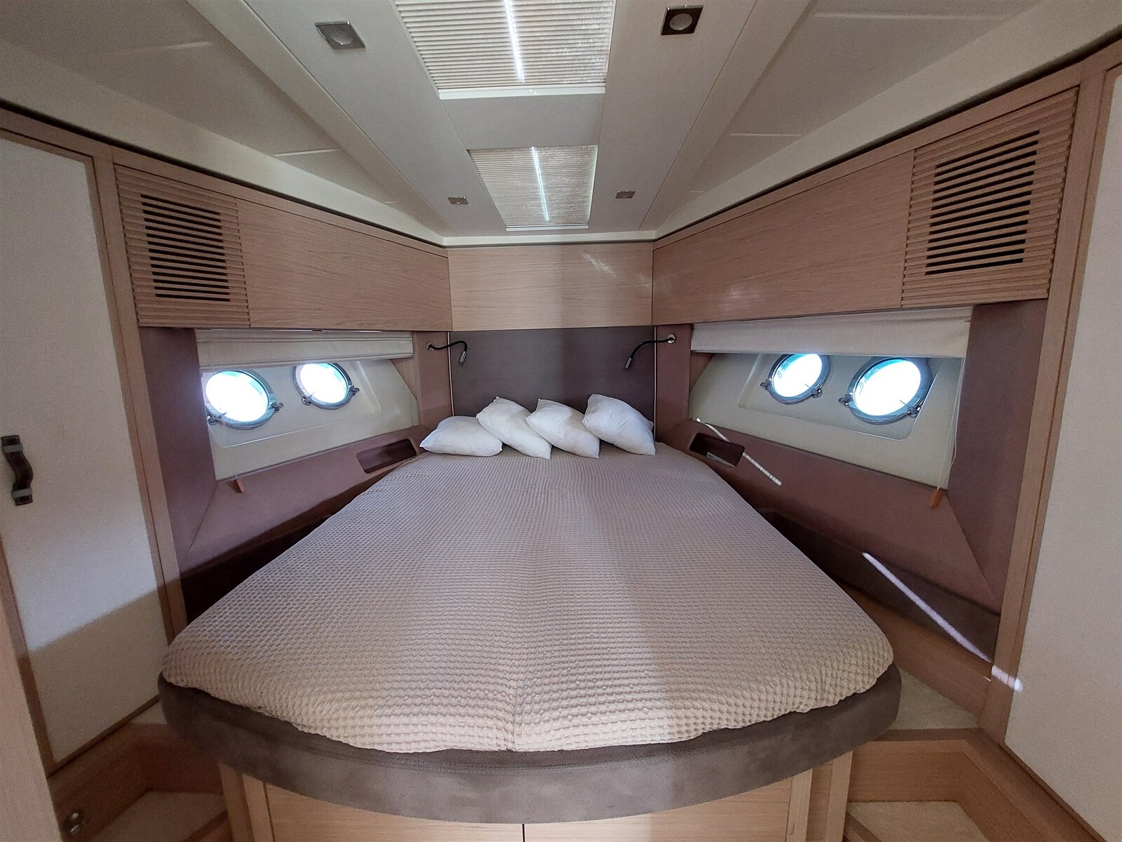 Der Monte Carlo 5 verkörpert eindeutig den Premium-Geist der Baureihe. Dieses emblematische Modell zeichnet sich durch die Eleganz seiner Stoffe, die Liebe zum Detail und das perfekt gelungene italienische Design aus. Durch die Kombination seiner angestammten Erfahrung und der neuesten Technologien hat Beneteau einen Motorkreuzer mit Werten entworfen, die direkt von Monte Carlo Yachts inspiriert sind. Inspiriert vom mediterranen Lebensstil hat der Monte Carlo 5 einen einzigartigen und zeitlosen Charme. Die große, schattige Flybridge ist als echter Ort des Lebens an Bord konzipiert und verfügt über einen Steuerstand, ein Sonnendeck, eine Außenküche sowie einen großen Salon, um Kreuzfahrten mit einem Hauch von Perfektion zu erleben. Die Verfeinerung des Rumpfes zusammen mit dem Volvo IPS 600-Motor sorgt für eine reibungslose, leistungsstarke und extrem sichere Navigation. Die vollständig versenkbare Glastür verwandelt das Hauptdeck in einen einzigen Ort zum Leben an Bord und vereint auf natürliche Weise den Innen- und Außenbereich. Der Salon in der Mitte der Essecke ist mit gegenüberliegenden Sitzen organisiert und verbreitet eine süße Atmosphäre der Eleganz, die von Komplizenschaft durchdrungen ist. Die drei Kabinen und zwei Badezimmer bieten bequem Platz für 6 Gäste und es wurde viel Wert auf Details gelegt.