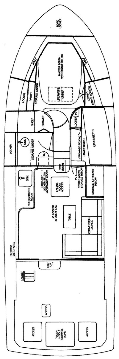 Угол поворота, Electronic engine control, 2 Бортовой компьютер (Volvo), спидометр (Raymarine), Эхолот (Raymarine), GPS (Raymarine), плоттера (Raymarine), Радио VHF (VHF Fly e VHF di rispetto in dinette).