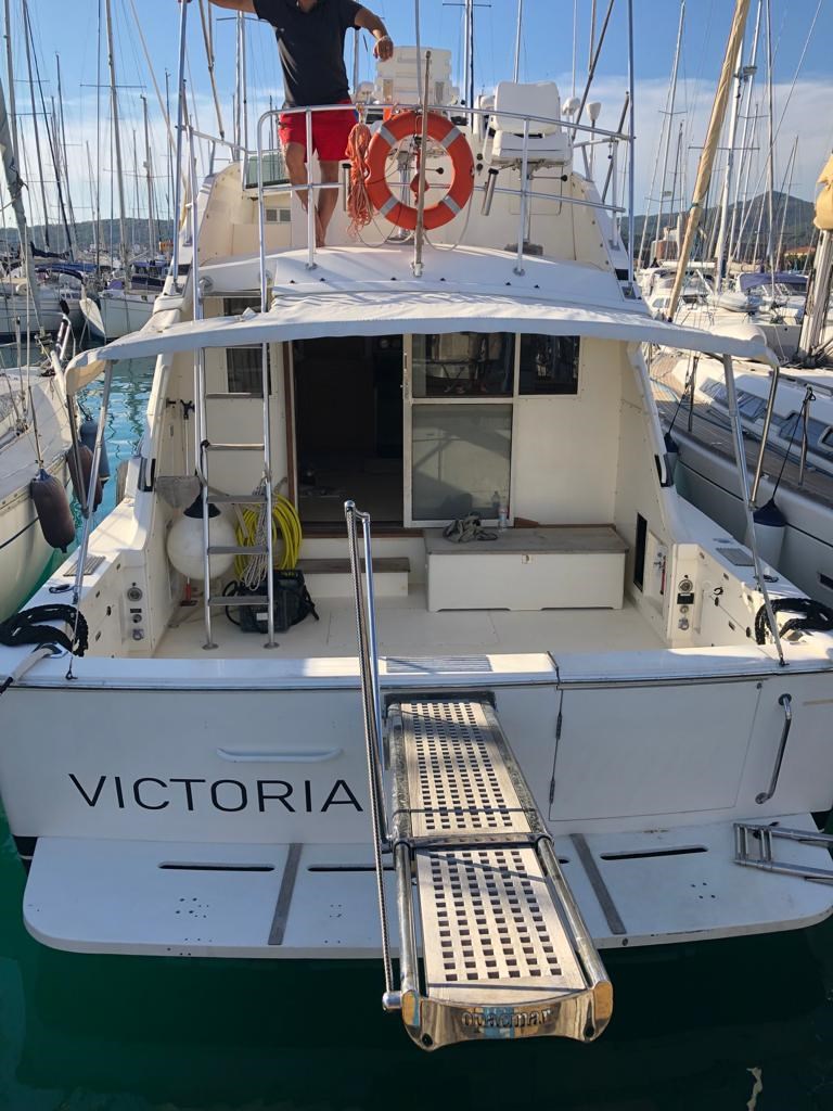 Met de 37 Cabriolet betrad Bertram Yacht het nieuwe tijdperk van hoge snelheden en moderne materialen en, we moeten zeggen, het resultaat was fantastisch. Victoria is gebouwd voor Italië, met origineel 220V elektrisch systeem en is altijd geliefd geweest bij de eerste eigenaar. De tweede heeft de afgelopen twee jaar geweldig werk verricht, door nieuwe Volvo 500 pk motoren te installeren en de systemen aan boord opnieuw in te bouwen. Victoria, is nu in "als nieuw" staat en klaar om te gaan. Mis de kans niet om haar in Toscane te bezoeken; Je zult versteld blijven staan. Prijs ex commissies.