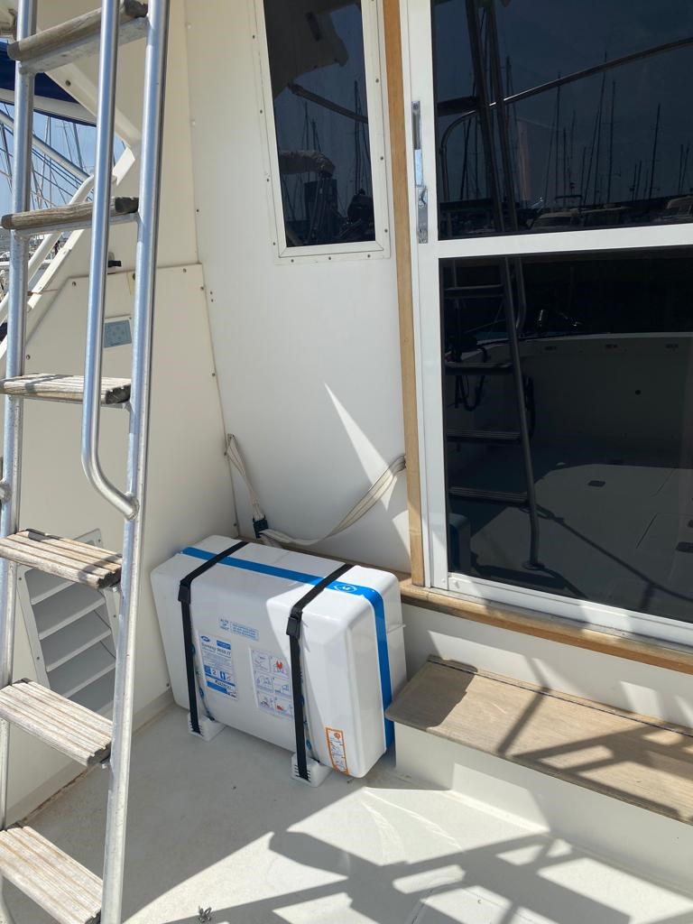 2 Motor Alarm, Bilge Alarm, Waterdruk systeem, Accu's (nuove 2021), Acculader (12 V e 24 V), Buitendouche, Zoeklicht geïnstalleerd op spiegel, Hydraulische trimflappen, Brandblussysteem (con controllo esterno), Anker (ketting) spoelsysteem, Sfeerverlichting, Loopplank (elettroidraulica), Platform, 3 Automatische bilgepomp, Ingangsdeur, Walaansluiting 230V, Walaansluiting voor water, City-/Water-connection, Gelijkrichter, Elektrische ankerlier, Zwemtrap, Hoorn, Boeglier.