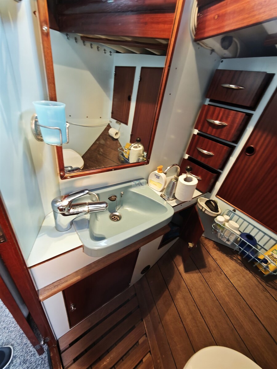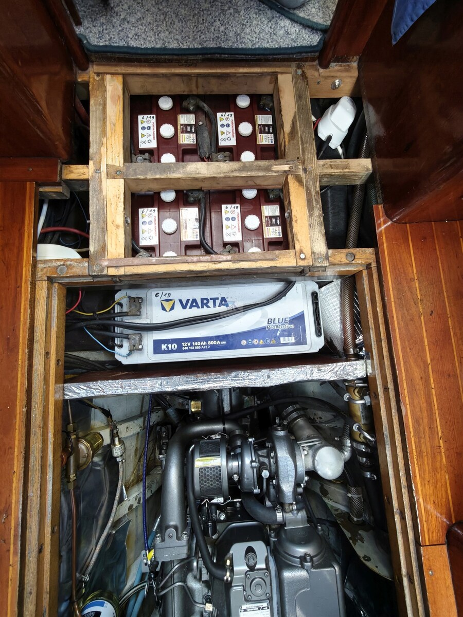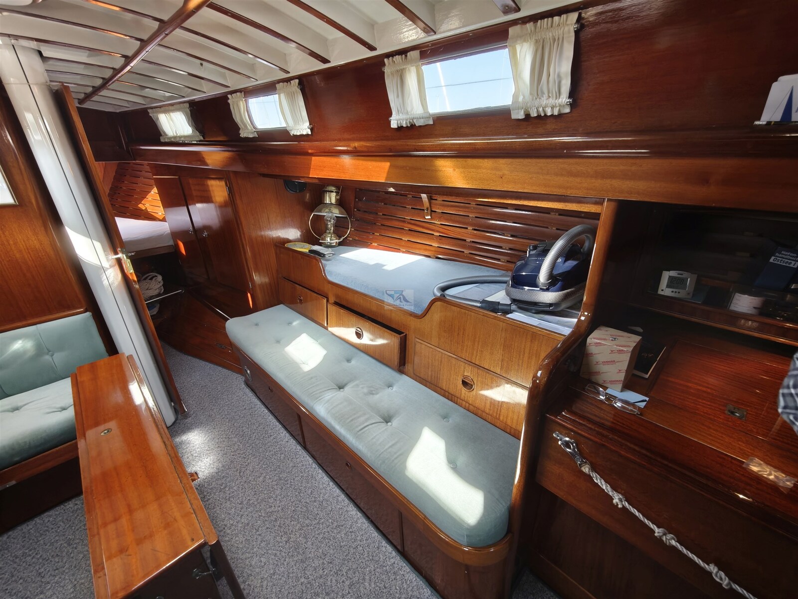 2 Anchor (5m Kette, 8mm), Water pressure pump, 4 Batteries (400 Ah), Teak Side Decks, Battery charger (50A LEB), 2 Automatic Bilge Pump, Teak Cockpit, Shorepower connector, Electric Windlass, Strand rigging, cockpit table, Horn, 9 Winch (2 x 52 ST, 2 x 46 ST Andersen, 4 Schotwinschen), Windex.