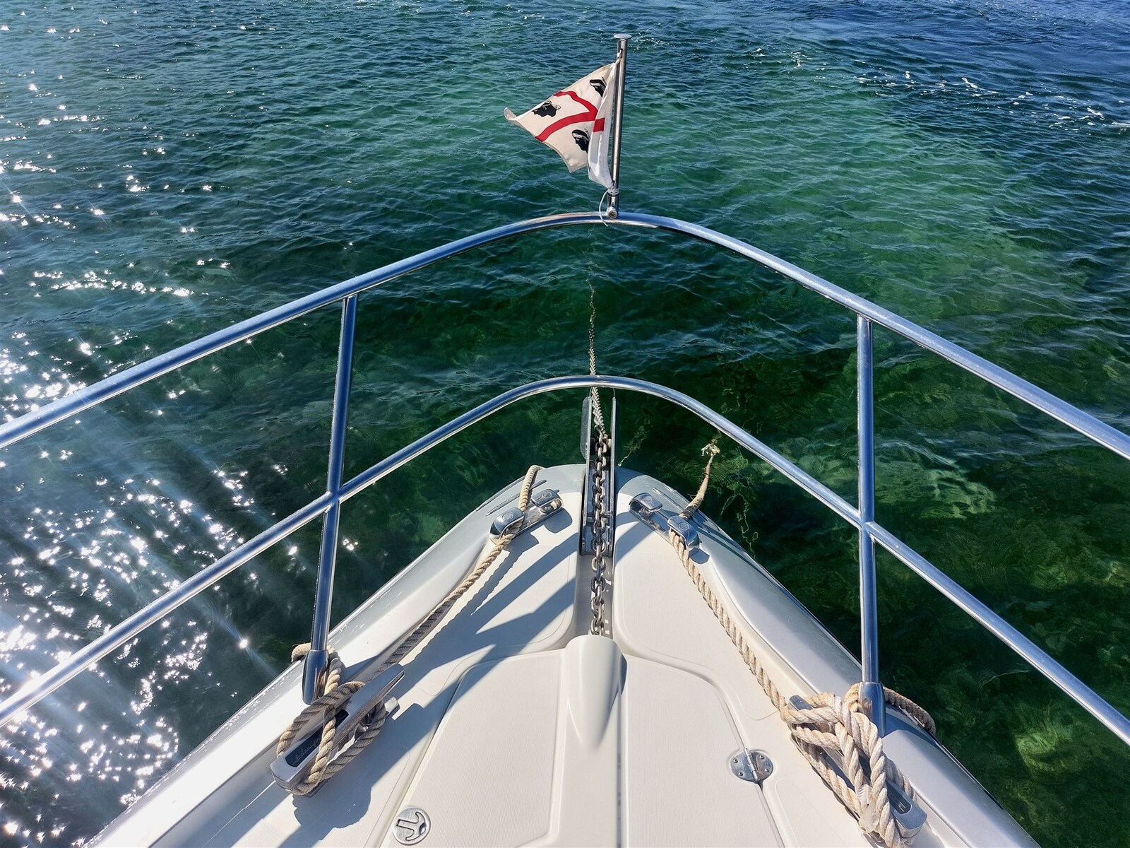 Motor Alarm, Bilge Alarm, Elektrische opening van de motorruimte, Waterdruk systeem, 5 Accu's, Speciale kleur, Buitendouche, Elektrische trimflappen, Tender (bijboot) garage, Kraan voor bijboot, Hardtop, Trimflappen indicatoren, Anker (ketting) spoelsysteem, Wasbak in de kuip, Sfeerverlichting, Onderwater Verlichting, Loopplank, Platform, Automatische bilgepomp, Ingangsdeur, Teak in kuip, Walaansluiting 230V, Rolbeugel, Elektrische ankerlier, Zwemtrap, Kuiptafel, Opklapbare salontafel, Bijboot (CM Mercury 8cv), Zeereling met opening, Hoorn, T-Top, Boeglier.