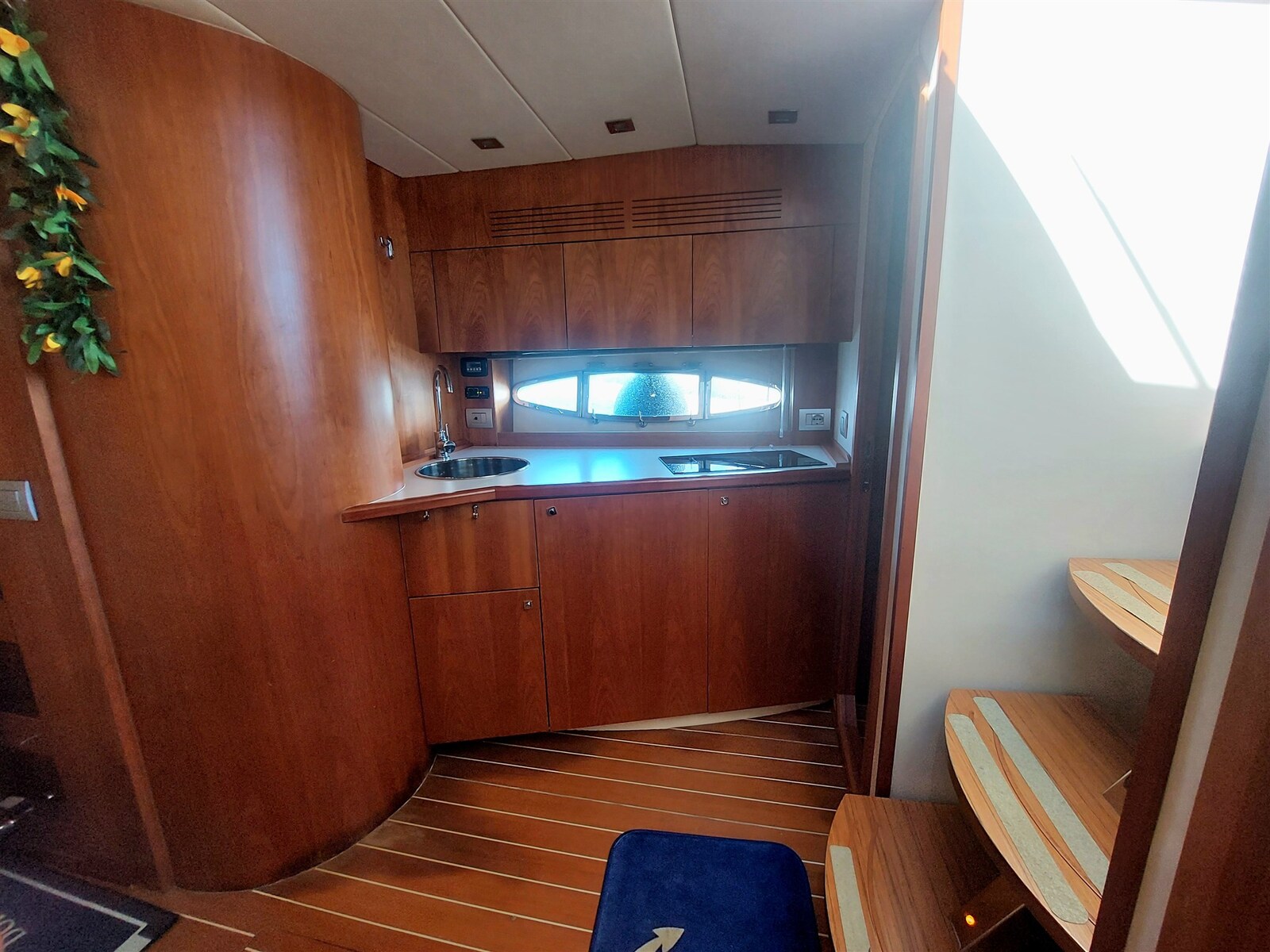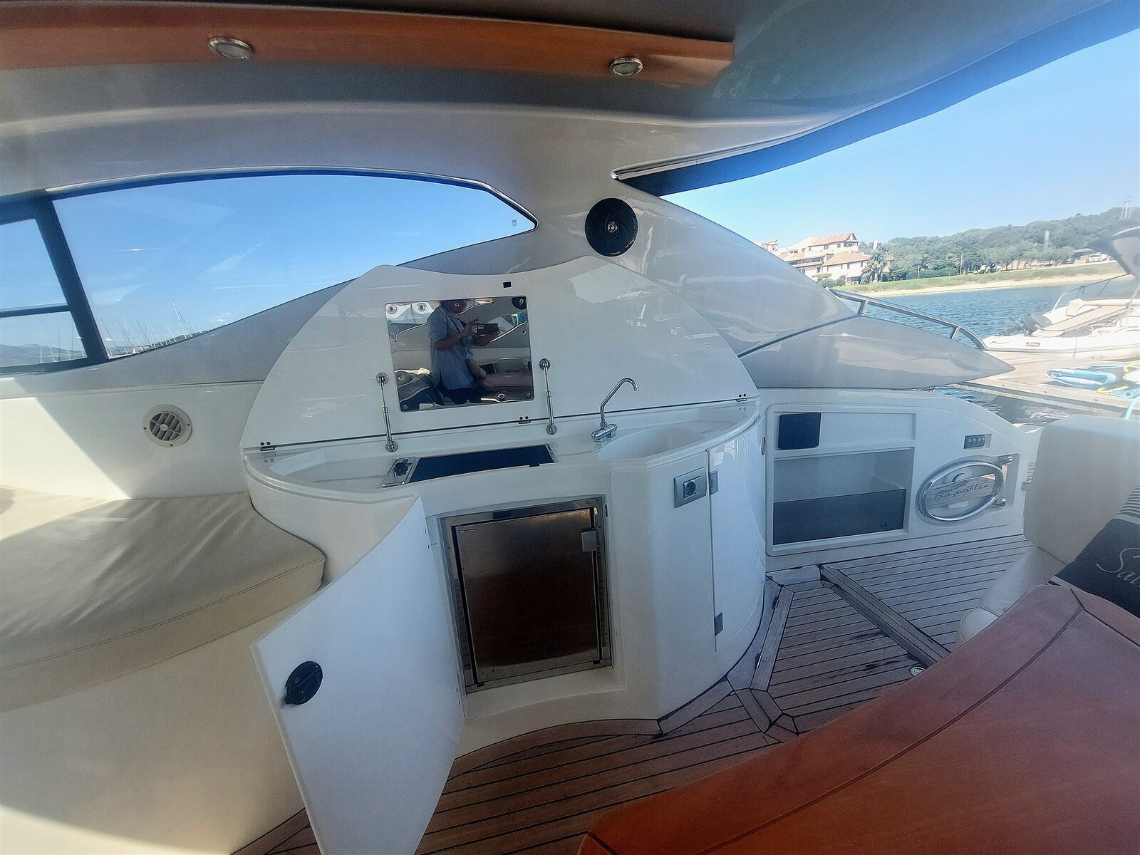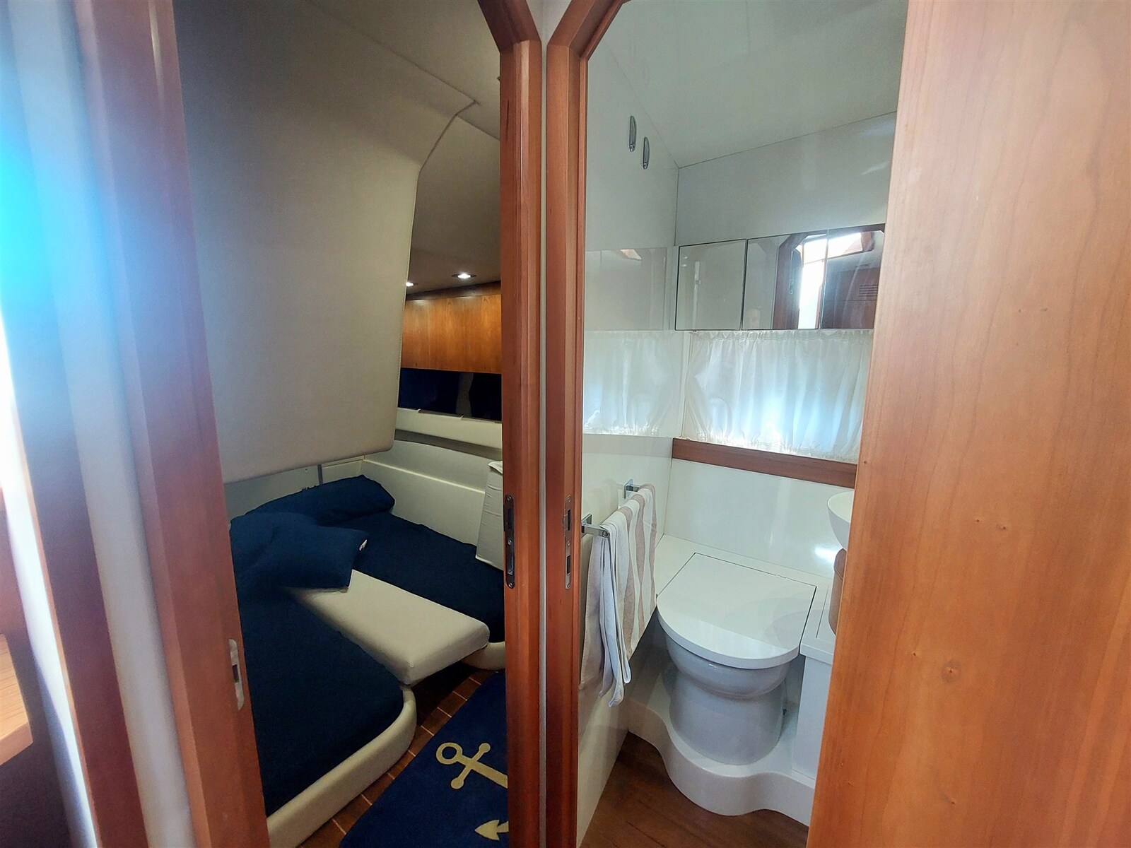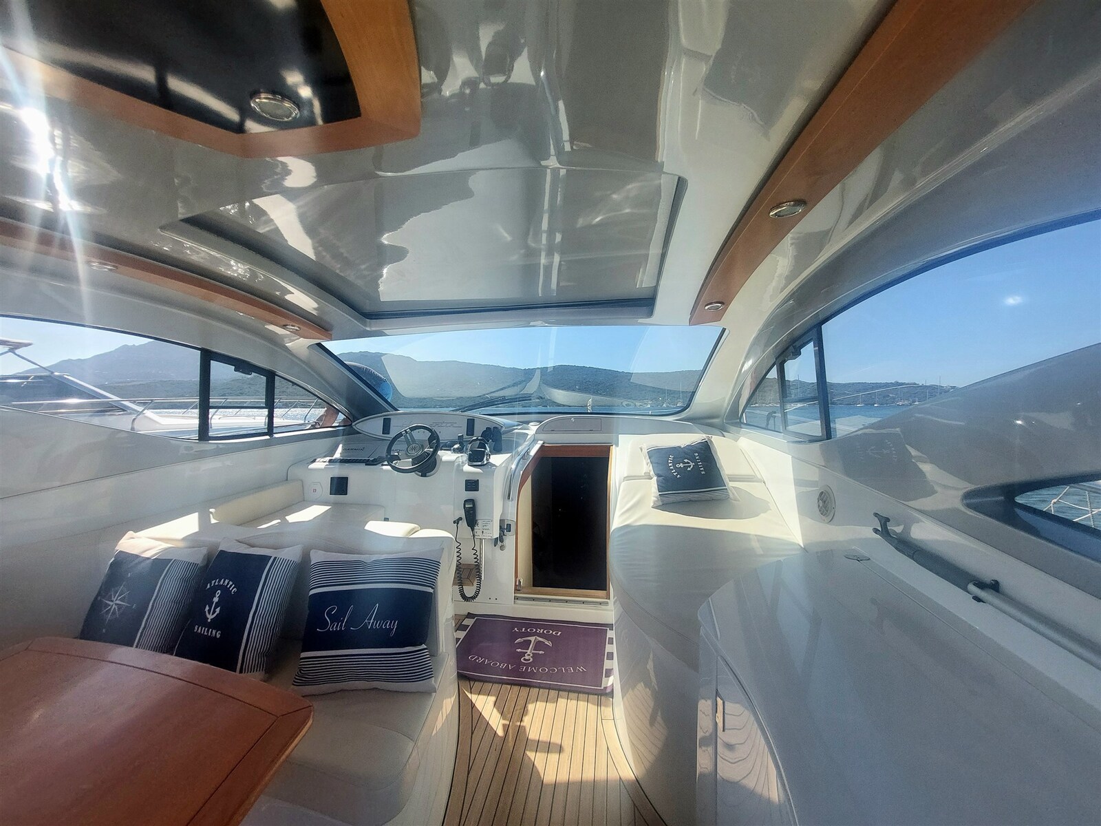Engine Alarm, Bilge Alarm, Electric Engine Compartment Opening, Water pressure pump, 5 Batteries, Special Colour, Deck Shower, Electric Flaps, Tender Garage, Tender Crane, Hard top, Flaps Indicators, Anchor Chain Washdown, Washbasin in the cockpit, Courtesy Lights, Underwater lights, Gangway, Platform, Automatic Bilge Pump, Entry door, Teak Cockpit, Shorepower connector, Rollbar, Electric Windlass, swimming ladder, cockpit table, Living Room Foldable Table, Tender (CM Mercury 8cv), guard rails with gates, Horn, T-Top, Bow Winches.
