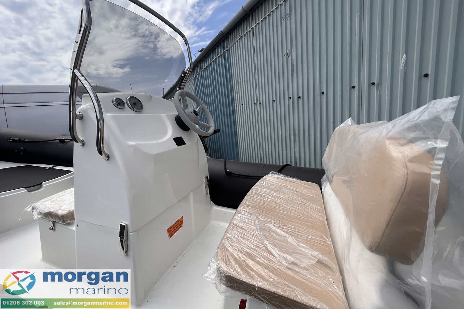 Cockpit: Steering wheel on dash; Windshield; Handrail; Front seat close to the console. Bench seat for pilot and co-pilot. Bow seat.