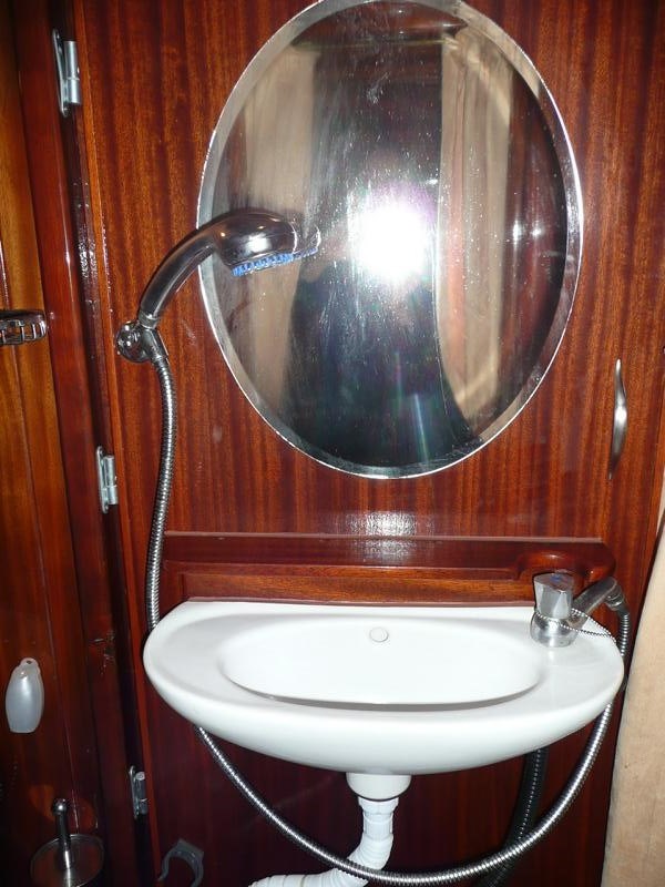 Anchor, anchor chain zinc-plated length 25, anchor locker, electric bilge pump, mechanical bilge pump, propeller number of blades 3