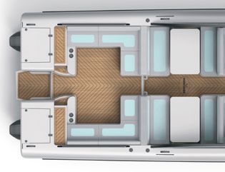 En su configuración estándar, está equipado con dos motores Mercury Verado V8 de 250 hp, ofreciendo un equilibrio óptimo entre prestaciones y eficiencia. Como opción, la motorización 2 × Mercury Verado de 300 hp permite superar los 50 nudos, manteniendo al mismo tiempo un nivel sonoro muy reducido, en beneficio del confort a bordo.
