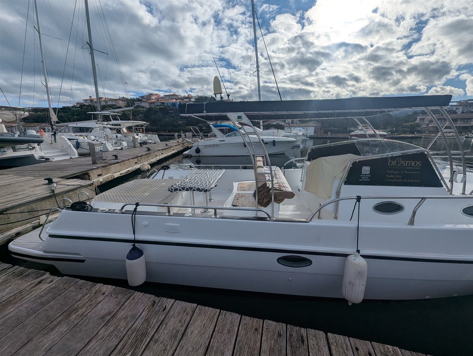 2 Allarme motore, Allarme sentina, Autoclave, Cavo corrente di banchina, Corrimano, Doccia esterna, Flap idraulici (Bennett), Impianto antincendio, Indicatori Flaps (Bennett), Luci di cortesia, Piattaforma, 3 Pompa di sentina automatica, Porta ingresso, Presa 220V banchina, Raddrizzatore, Rollbar, Salpa Ancore Elettrico, Scala reale, Tavolo pozzetto, Tromba, T-Top.