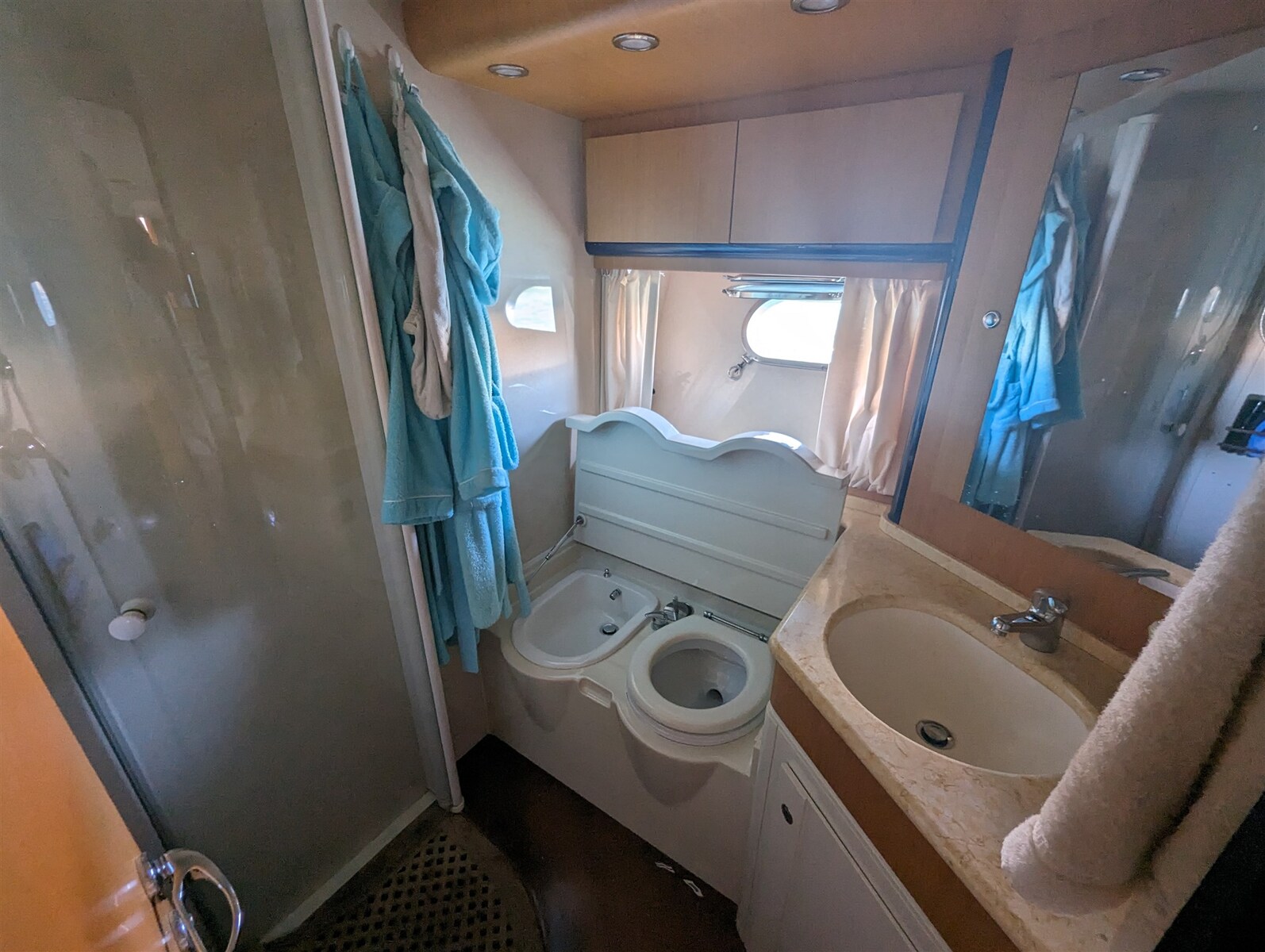 Boiler (bivalente), Cassaforte, Clima reversibile, Collegamento internet, Impianto acque nere, Prese interne 12v, Prese interne 220v, Serbatoio Acque Nere, 3 WC marino elettrico.