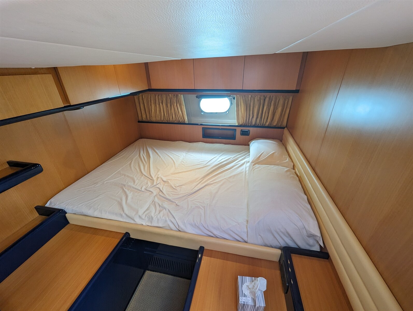 Il Sarnico 58 è un traguardo di eleganza e purezza delle forme creato dallo studio di design Nuvolari Lenard. Le linee che definiscono il profilo sportivo e moderno concedono al tempo stesso molto spazio a bordo. La scelta delle finestrature laterali dona carattere ma anche luce e visibilità in tutto il pozzetto. La visibilità è totale, anche a beneficio della sicurezza. Sottocoperta tre cabine separate offrono una perfetta privacy. L'armatoriale trova posto a prua e la doppia per gli ospiti a poppa., a centro barca altri due comodi posti letto a L. L'ampiezza dei diversi vani, i loro arredi ed anche i bagni sono di alto livello. A poppa trova sistemazione l’alloggio per il marinaio. Il Salone è dedicato soprattutto all'entertainment. Paratie interne di forme sinuose permettono di ottenere il migliore sfruttamento degli spazi, mentre i profili uguali di tutti gli elementi d'arredo donano una piacevole sensazione di armonia estetica. La ricerca di nuove essenze pregiate, utilizzate per decori di rara bellezza, mette in evidenza l'abilità dei maestri d’ascia del cantiere. La posizione centrale dei motori garantisce la massima stabilità in navigazione. Disponibile subito!