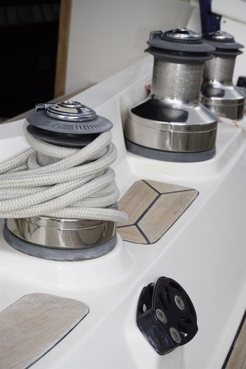 Alarme moteur, Ancre (ULTRA Inox), Eau sous pression, Batteries (2026), Chargeur de batterie (MASTERVOLT Kombi 24V/4000W/60A), Douche de cockpit (h/c), Propulseur d'étrave (SLEIPNER 24V, 10 hp, 25 cm), Bossoirs (SIMPSON 100), Bossoir pour HB (NOVALIFT), Éclairage de courtoisie, Passerelle (BESENZONI 2,35 m hydr), Pompe de cale automatique, Pompe de cale manuelle, Pont en teck (2025 new), Prise de quai, Guindeau électrique (+ Capstan, 100 m ss chain), Gréement monotoron (2025 new), Echelle de bain, Chaise support HB (in stern locker), table de cockpit (Teak, with extension), Annexe (WILLIAMS Jet 60 hp 10h), Filières avec sortie latèrale, Corne, Winch électrique (2 x LEWMAR 48 + 2 x LEWMAR 64), Windex.