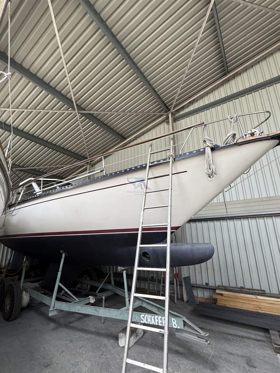 Robuster Motorsegler von Paul Elvström mit Bleikiel, starkem Volvo-Penta-Diesel (68PS) und großem Deckshaus.