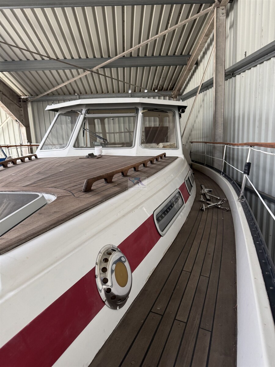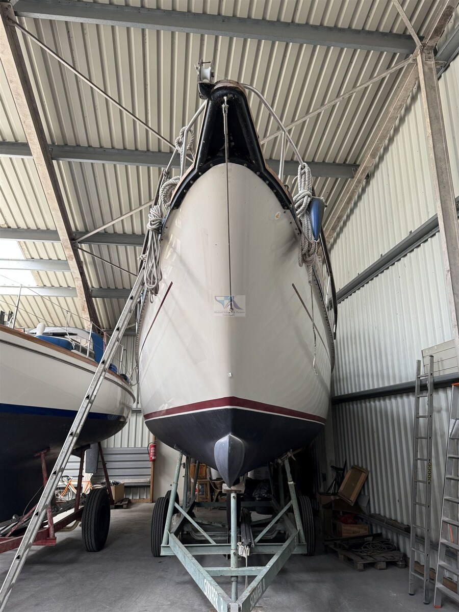 Voilier à moteur robuste de Paul Elvström avec quille en plomb, diesel Volvo Penta puissant (68 ch) et grand rouf.