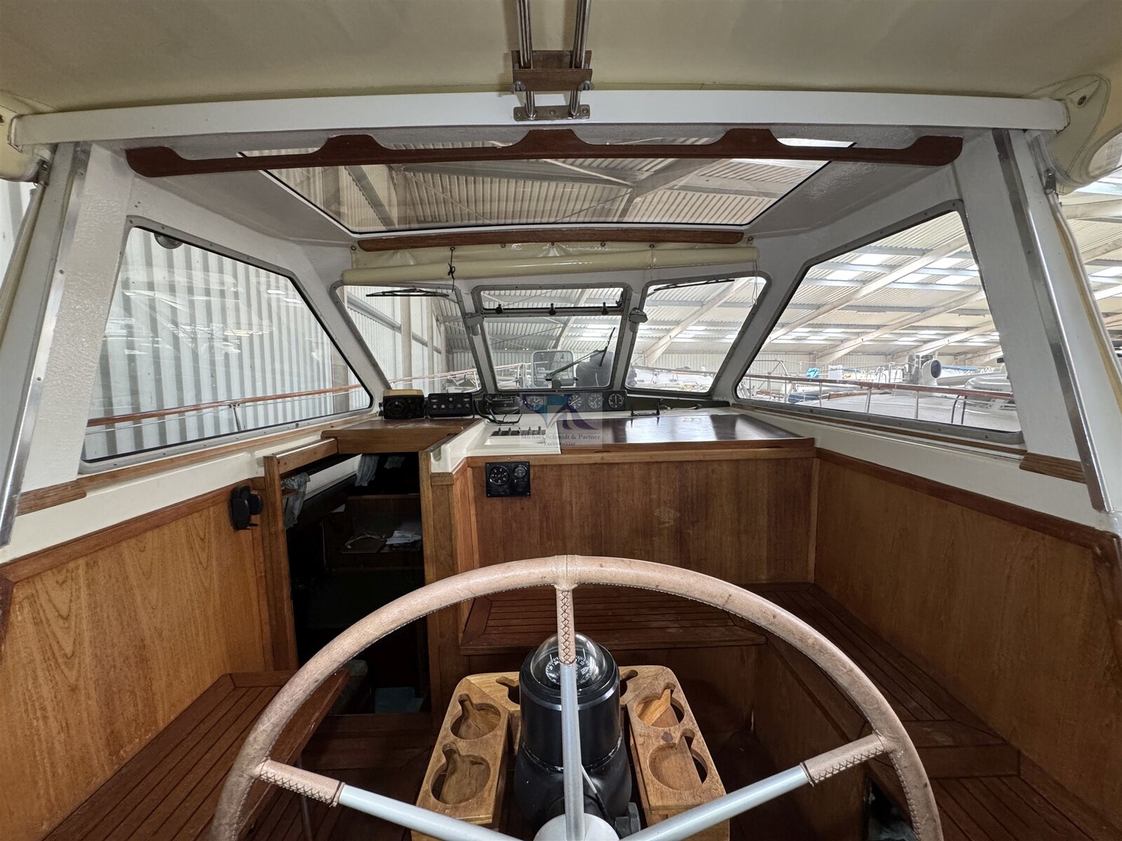 Robuuste motorzeiler van Paul Elvström met loden kiel, sterke Volvo Penta diesel (68pk) en grote roef.