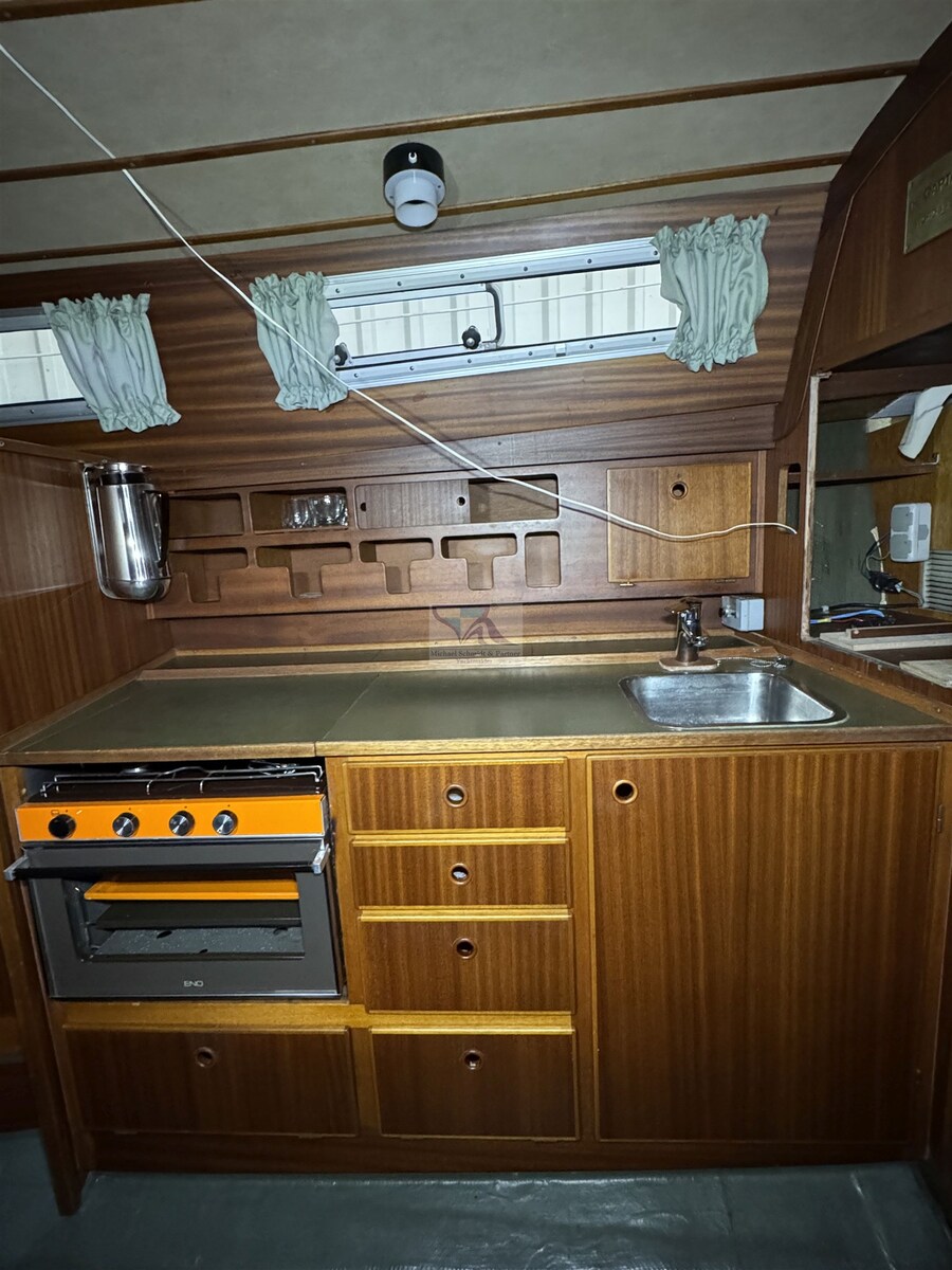 Robusto veliero a motore di Paul Elvström con chiglia in piombo, potente Volvo Penta diesel (68cv) e ampia tuga.