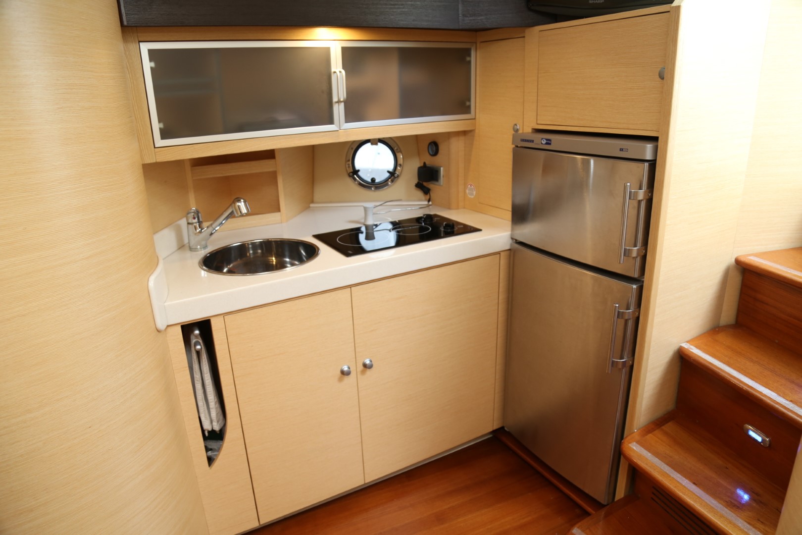 Galley corner including: pyroceram stove top, s. steel sink with mixer, Corian® countertop