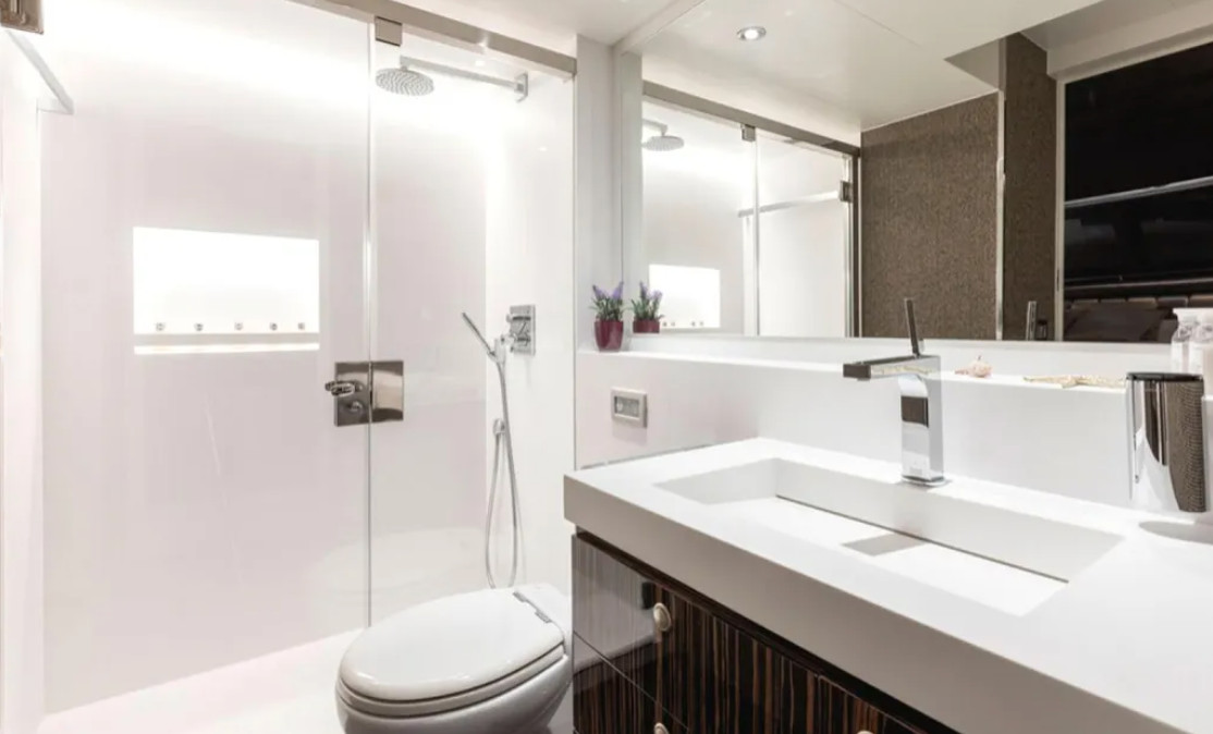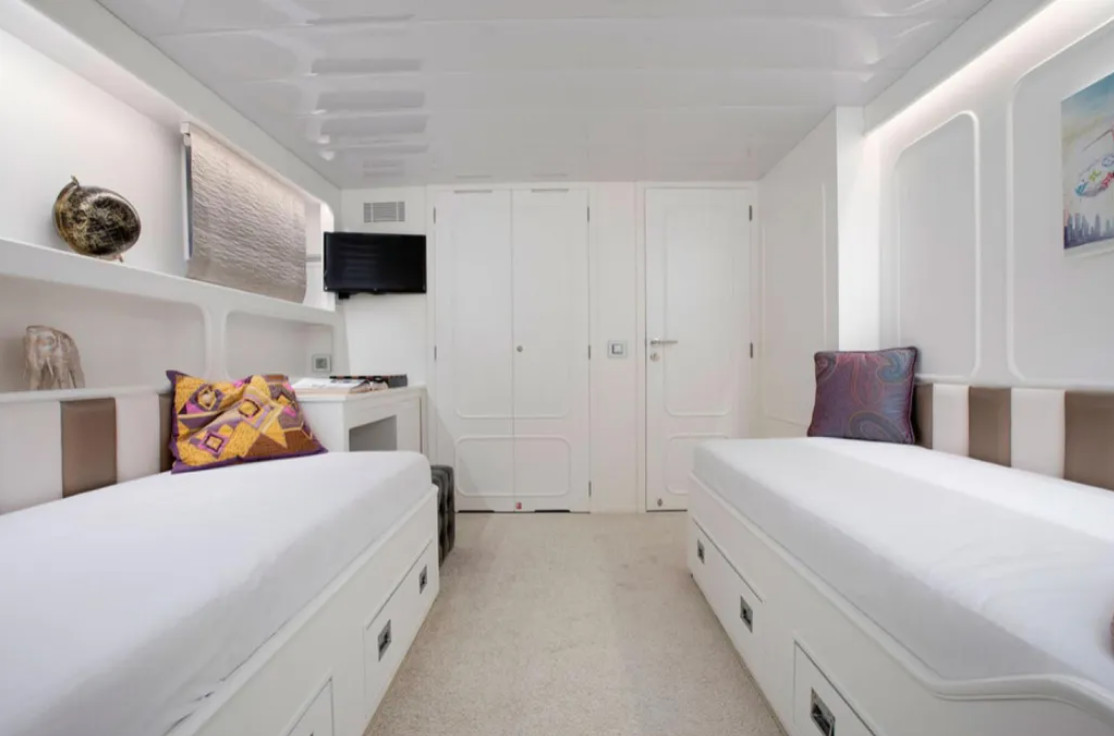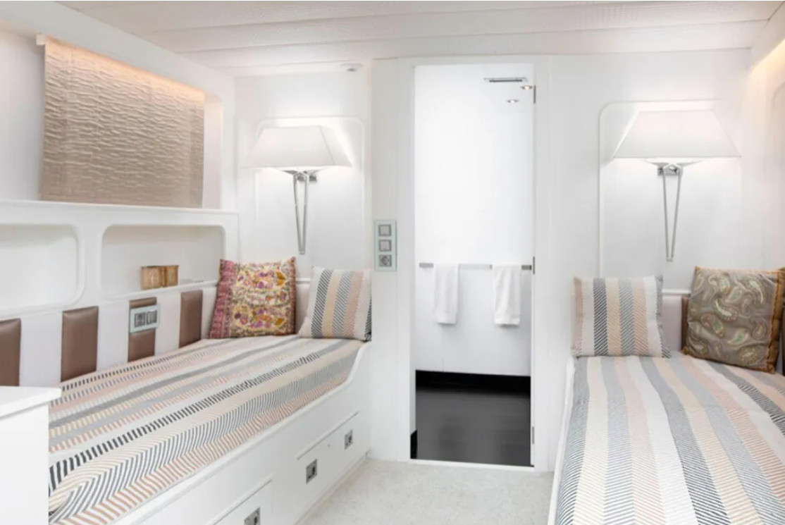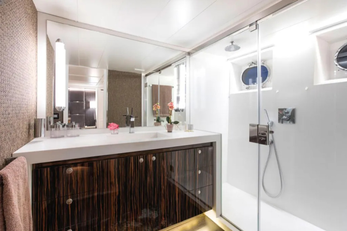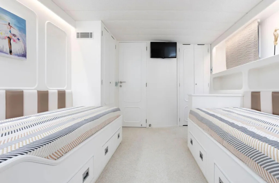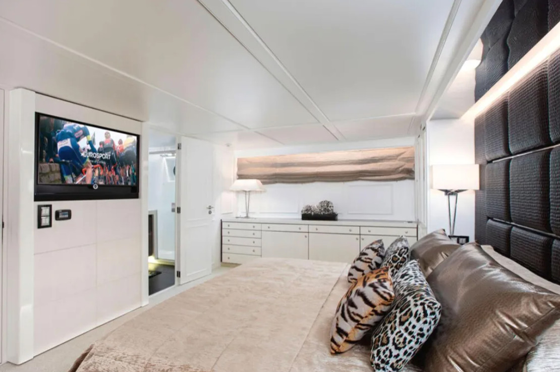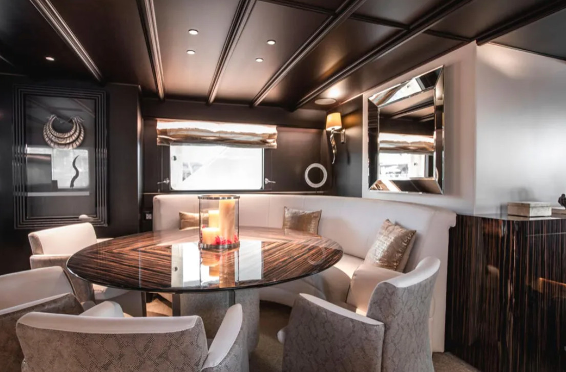 La renovación interior de este yate de lujo fue realizada por Estudio Ojinaga en Barcelona, mientras que los representantes del propietario supervisaron todos los detalles técnicos. Se utilizaron acabados de alta calidad para modernizar y reorganizar sus cómodos espacios.