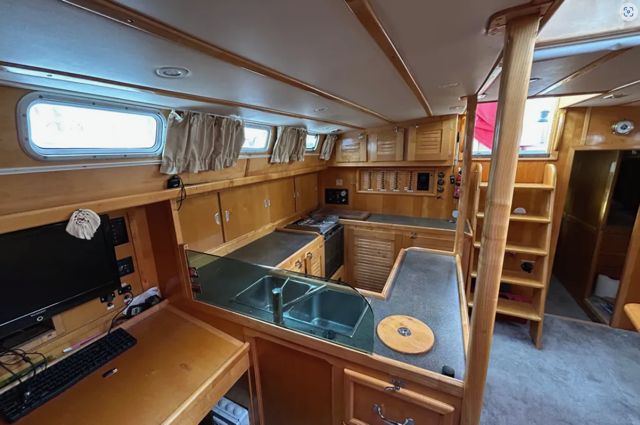 Built in mahogany/epoxy at the Chantiers de l'Estérel shipyard to a BOUVET/PETIT design, this 17.90 m sloop is the work of a passionate master boatbuilder. Its sistership? The legendary Écureuil d'Aquitaine, winner of the Vendée Globe with Titouan Lamazou — a lineage that speaks for itself.