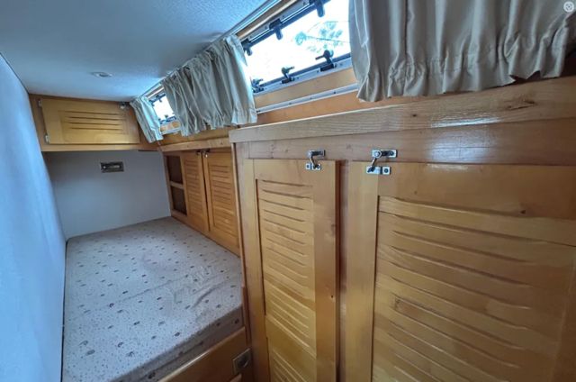 Motorisation Moteur CUMMINS 4BT3 150 CV diesel entièrement reconditionné, en ligne d'arbre avec hélice Maxprop 650 mm bronze 3 pales. Trois réservoirs de 1 300 L de gasoil.