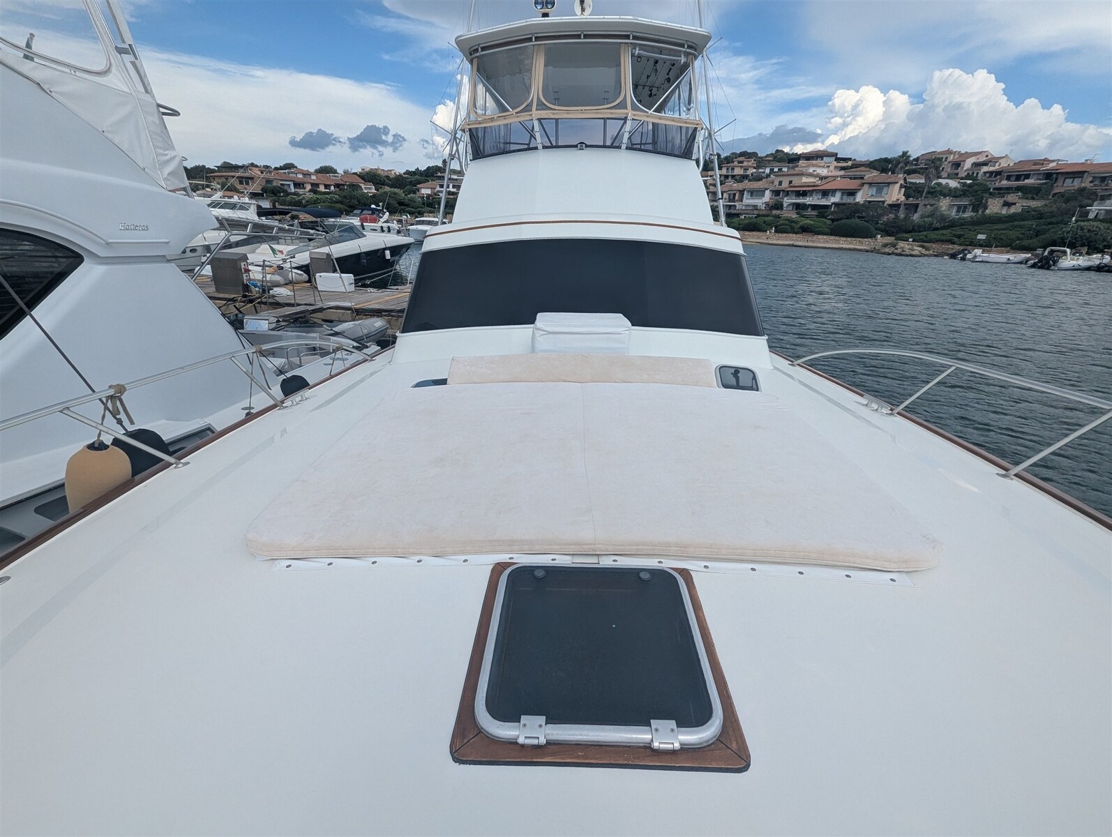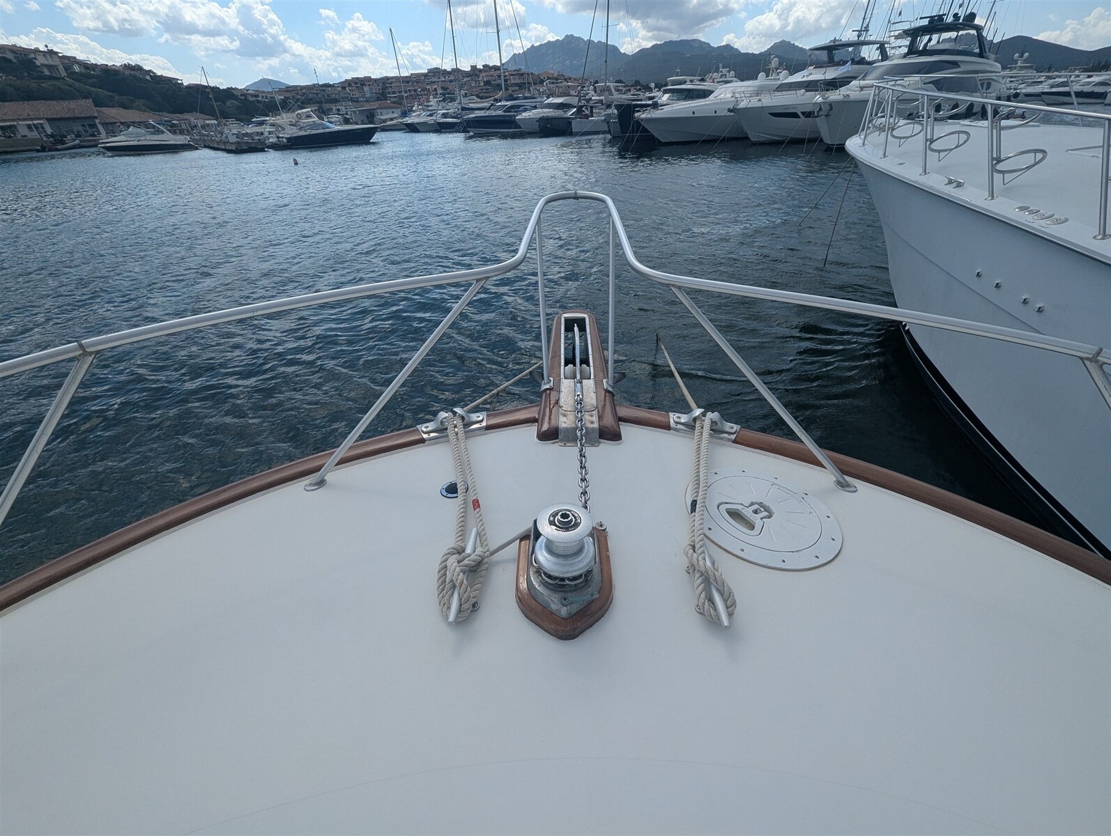 Gas Alarm, 2 Motoralarm, Bilgealarm, Wechselstromgenerator, Druckwasserpumpe, Cockpitdusche, Scheinwerfer am Heck, Trimmklappen hydraulisch, Hardtop (con trasparenti laterali), Feuer-Löschanlage, Waschbecken im Cockpit, Nachtbeleuchtung, Unterwasserbeleuchtung, Gangway (Manuale), Plattform, 4 automatische Bilgepumpe, Eingangstür, Teak im Cockpit, Landanschluß, Wasseranschluss, Rectifier, elektrische Ankerwinde, Badeleiter, Cockpittisch, Signalhorn.