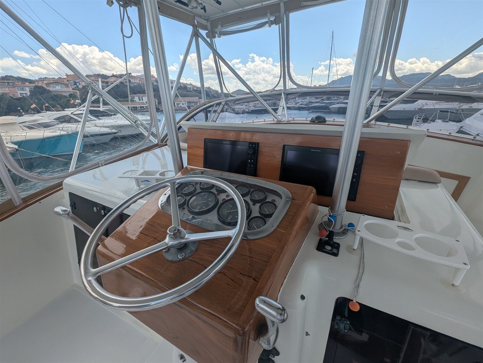 Angolo barra, Antenna radar, Contamiglia (Raymarine), Ecoscandaglio (Raymarine), GPS (Raymarine), Pilota automatico (Raymarine), 2 Plotter (Raymarine hybrid Touch), Sedile Copilota.