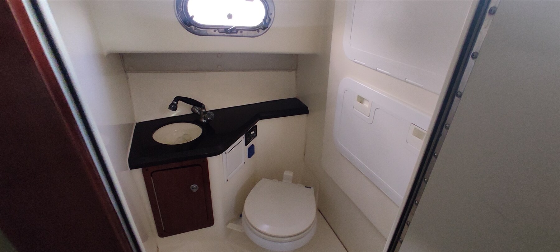 Boiler (bivalente), Prese interne 12v, Prese interne 220v, Serbatoio Acque Nere, WC marino elettrico.