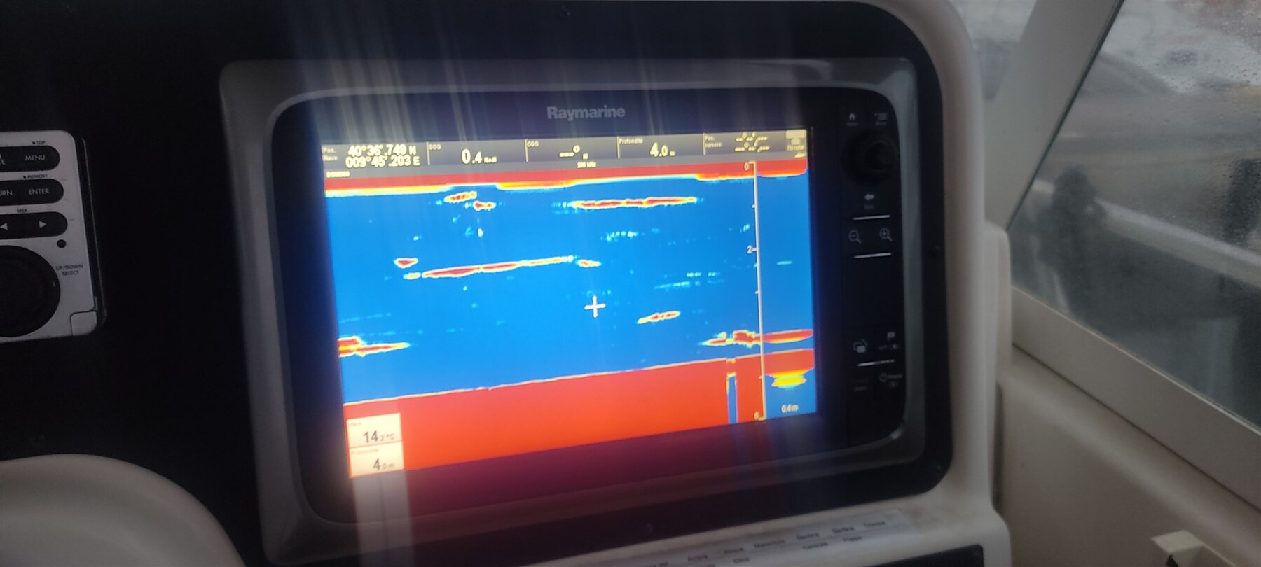 Radar Antenna (Raymarine), Electronic engine control, On-Board Computer, Chain counter, Depth Sounder (Raymarine), Autopilot (Raymarine), Plotter with GPS antenna (Raymarine).