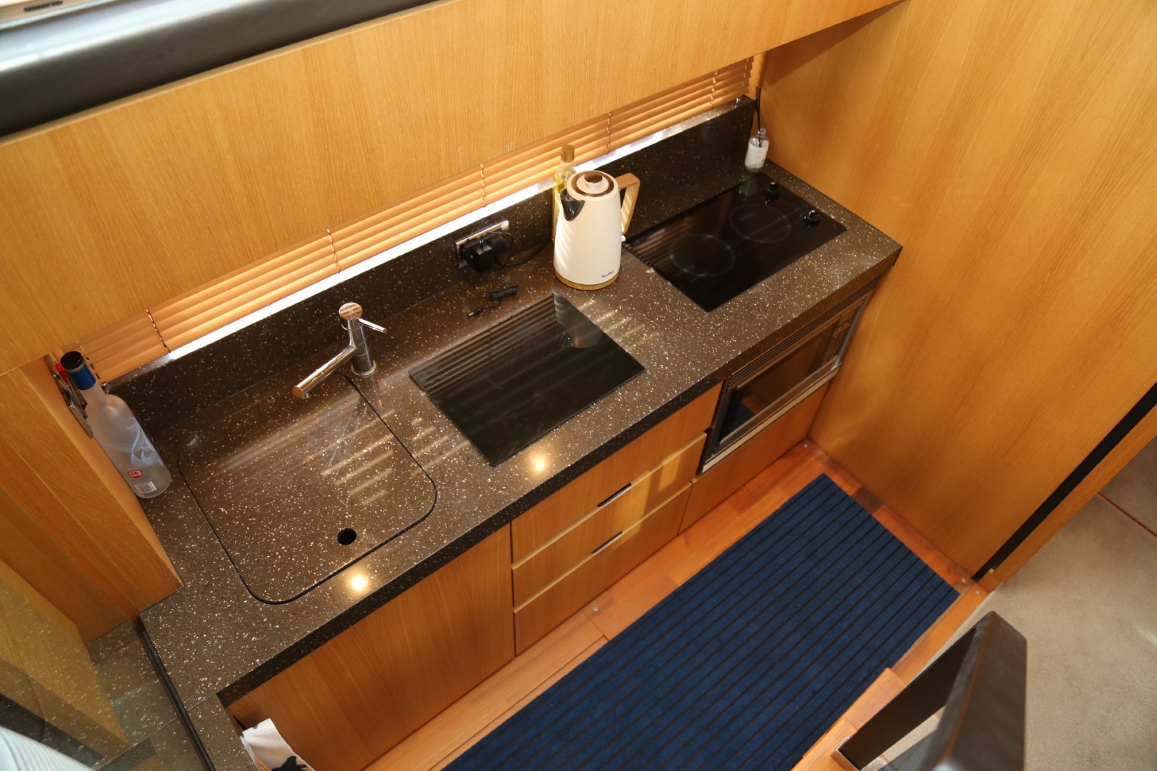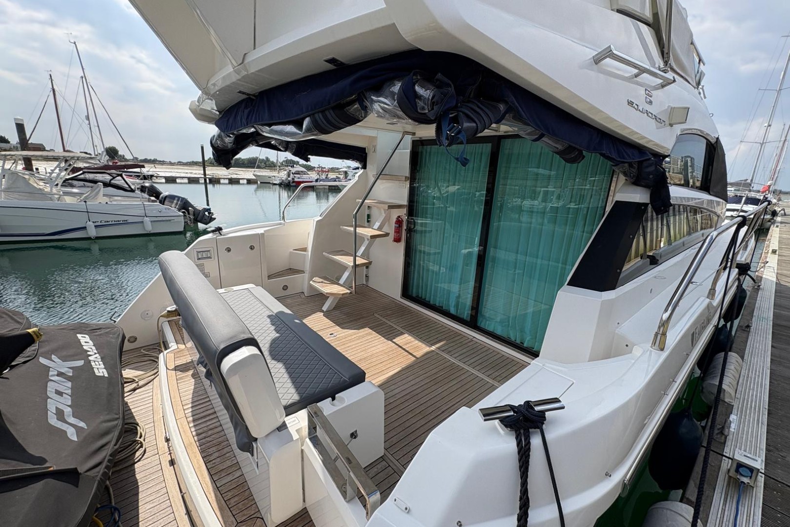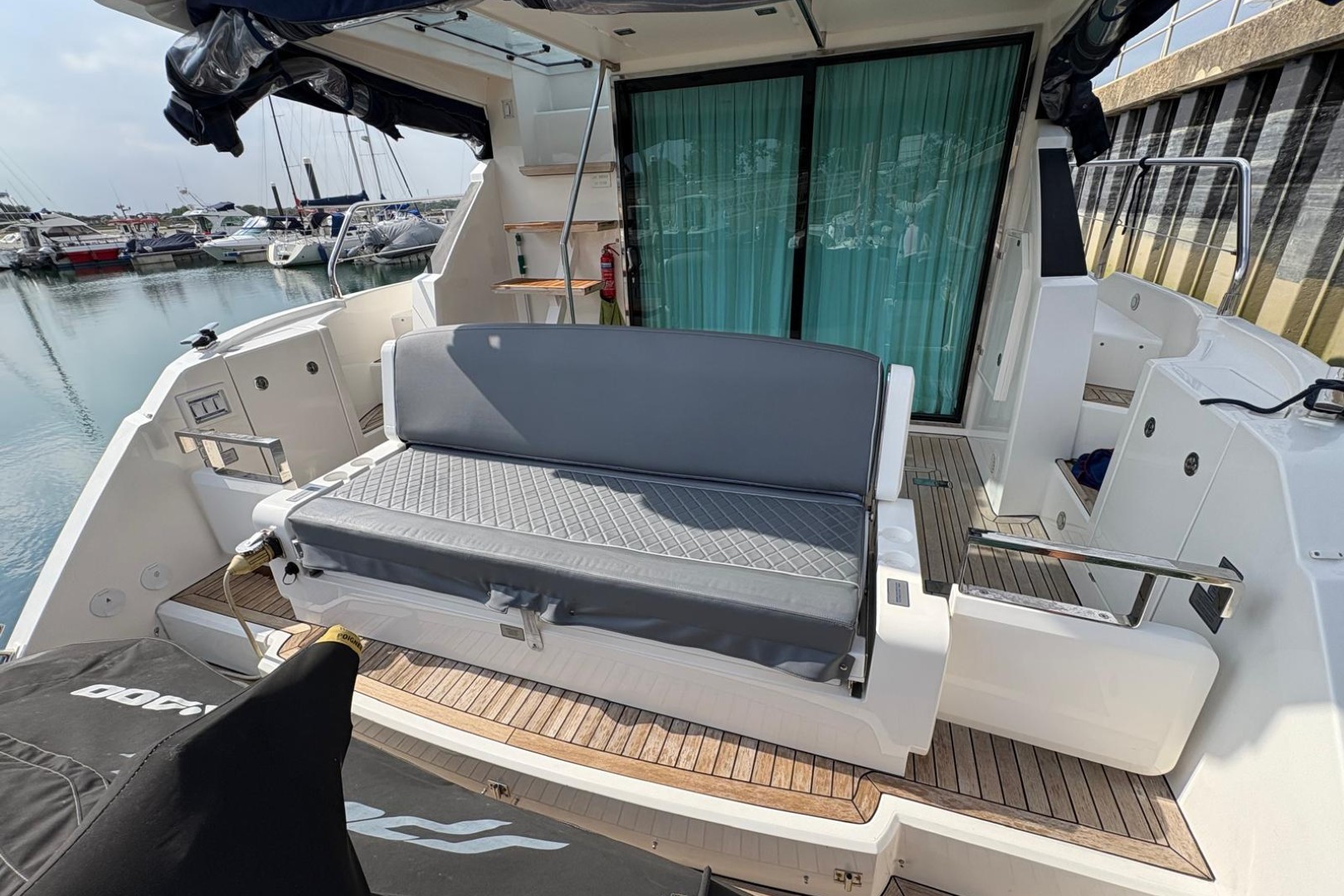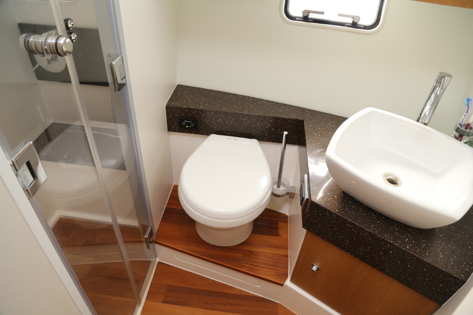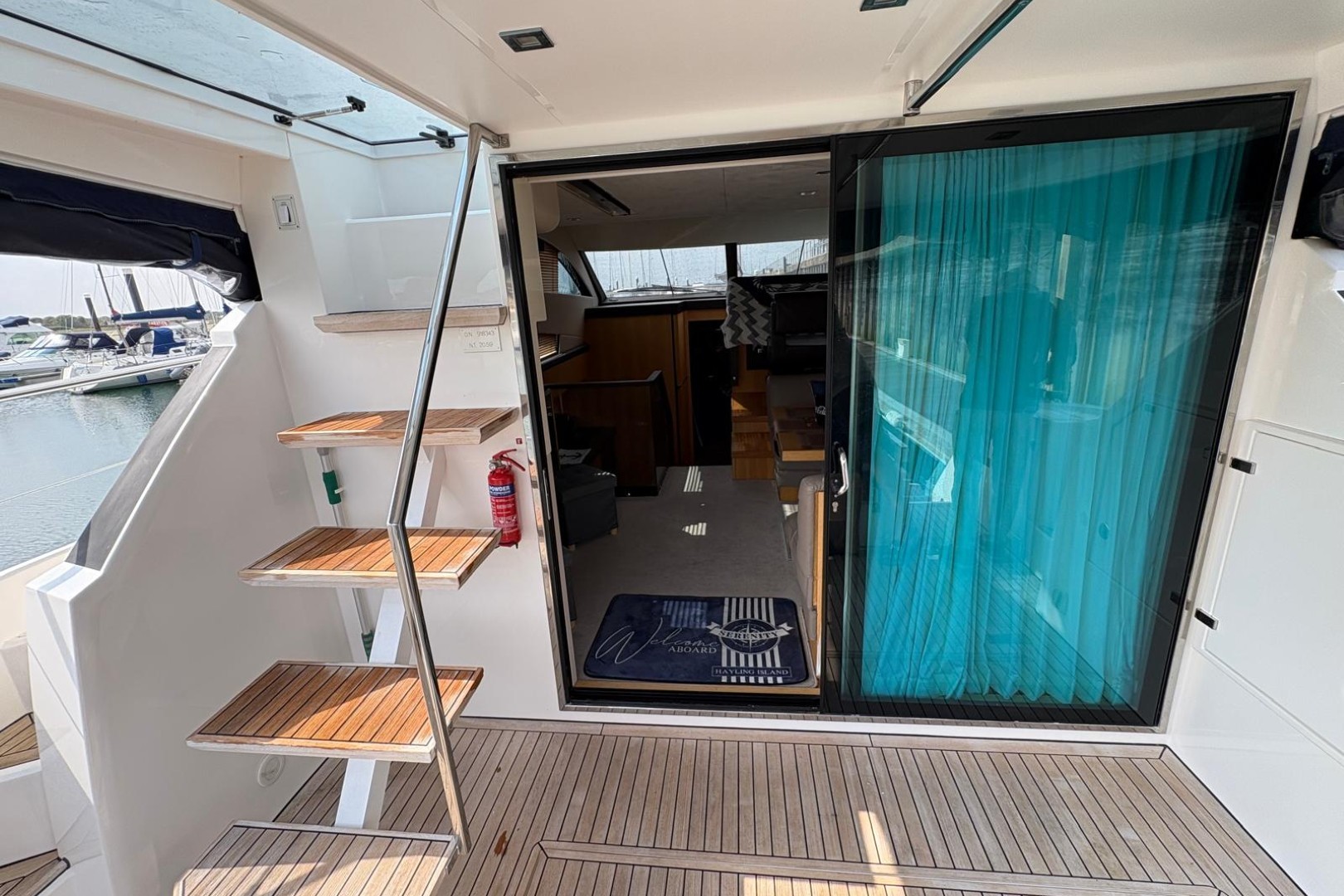 The integral bathing platform gives the boat a longer waterline length for improved performance, particularly at reduced power settings