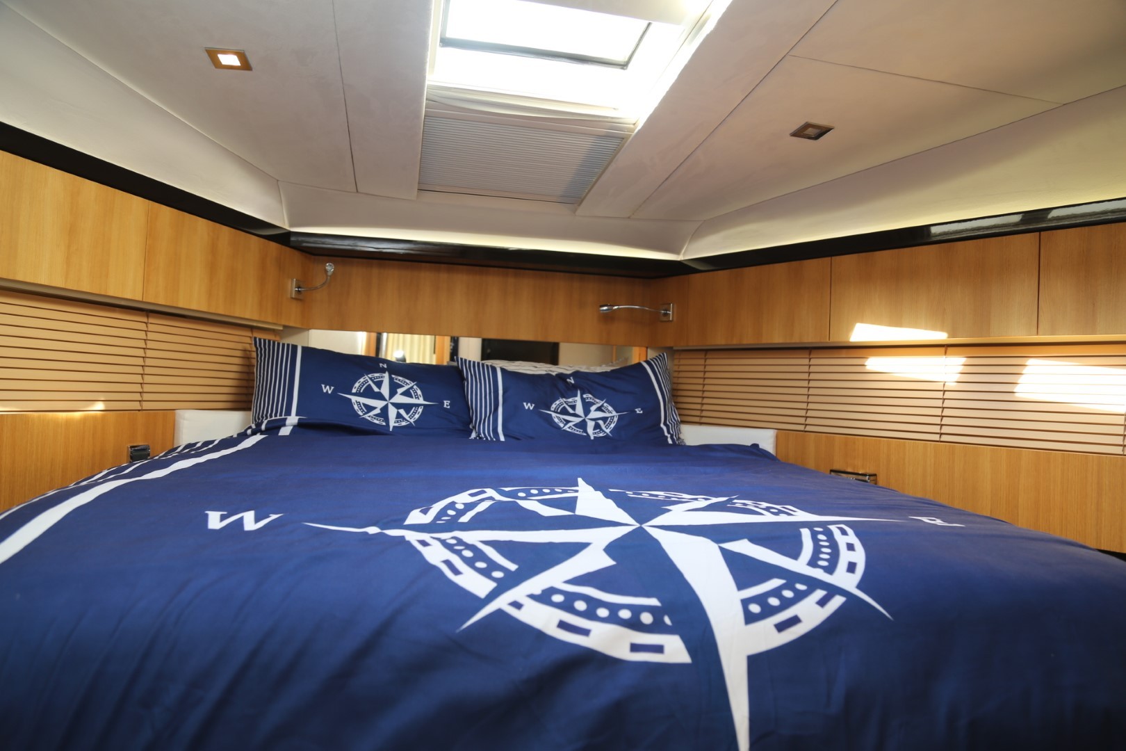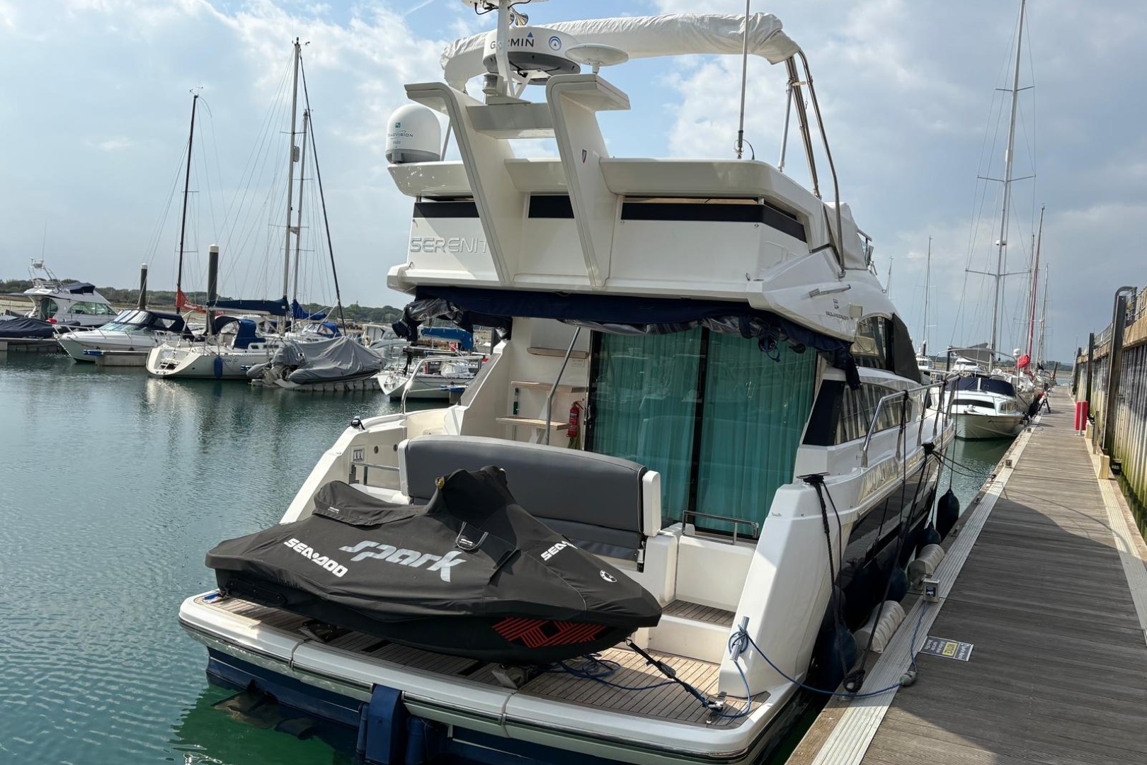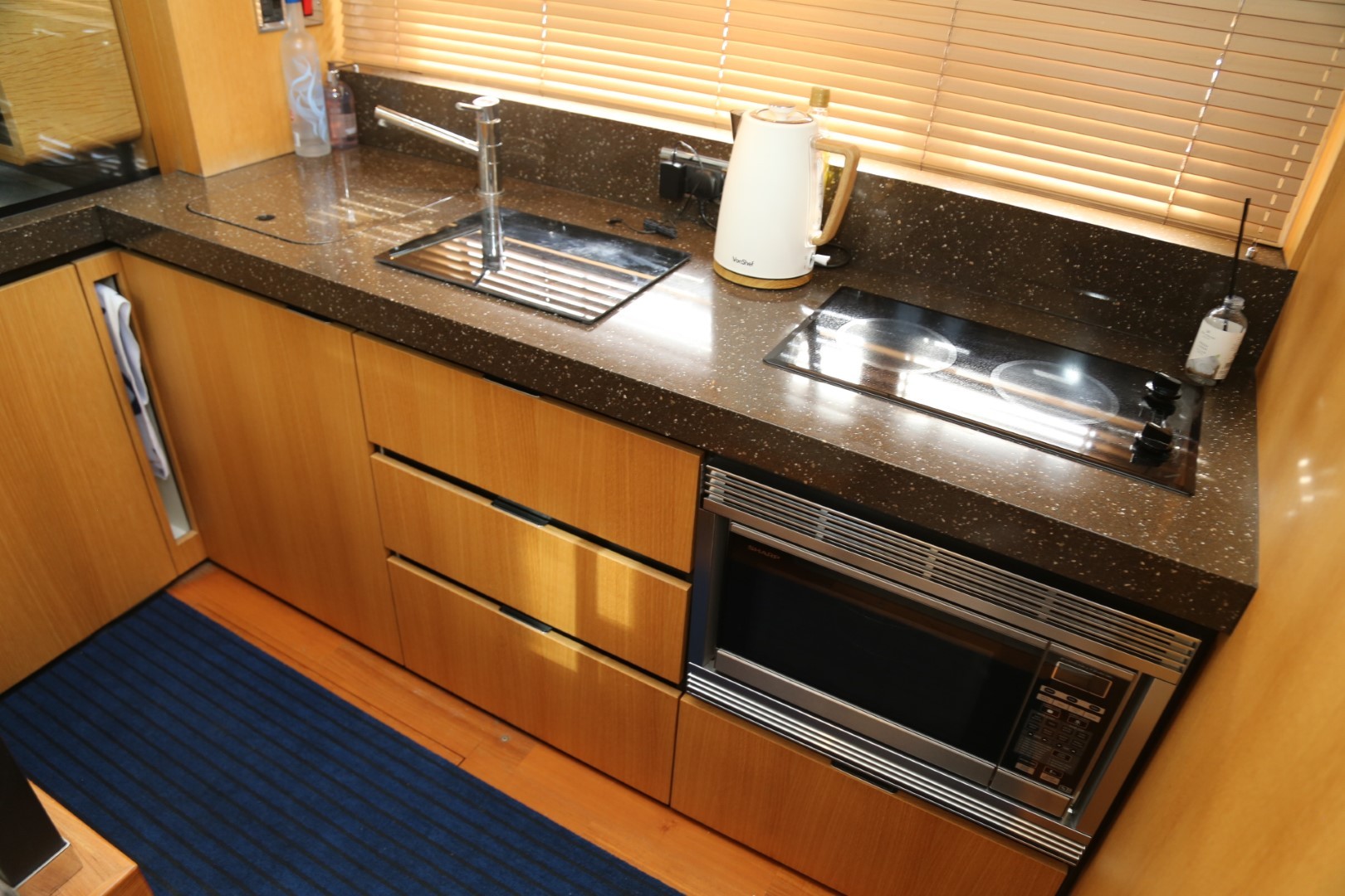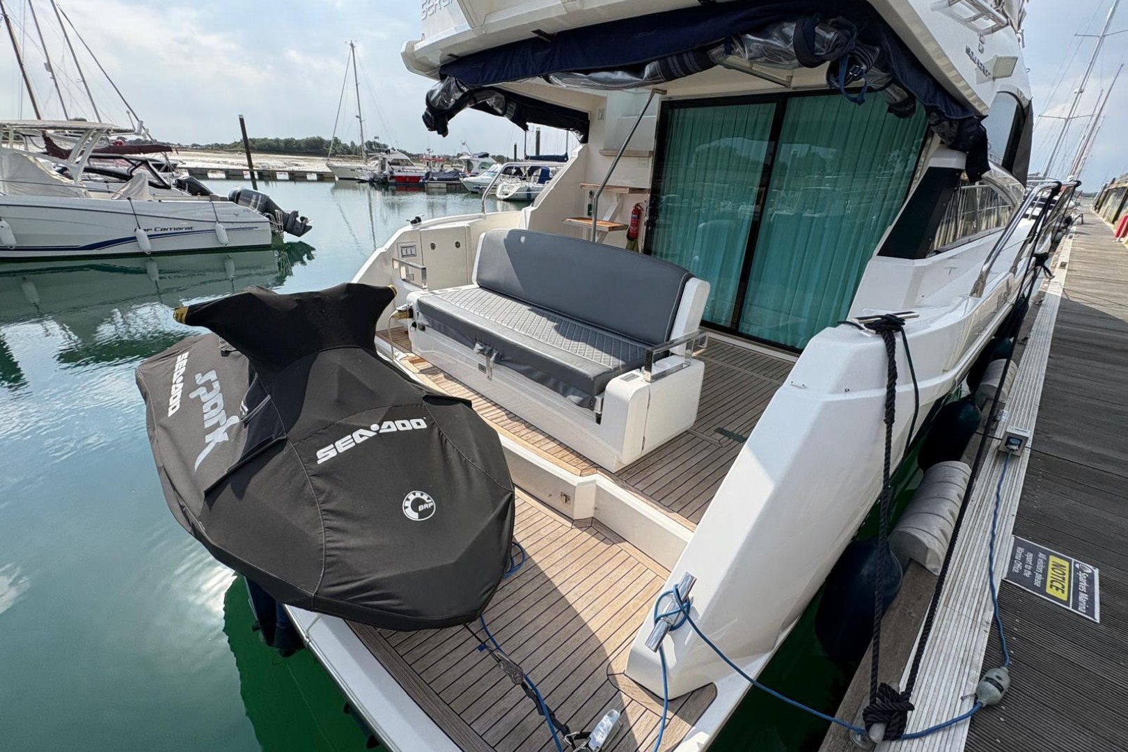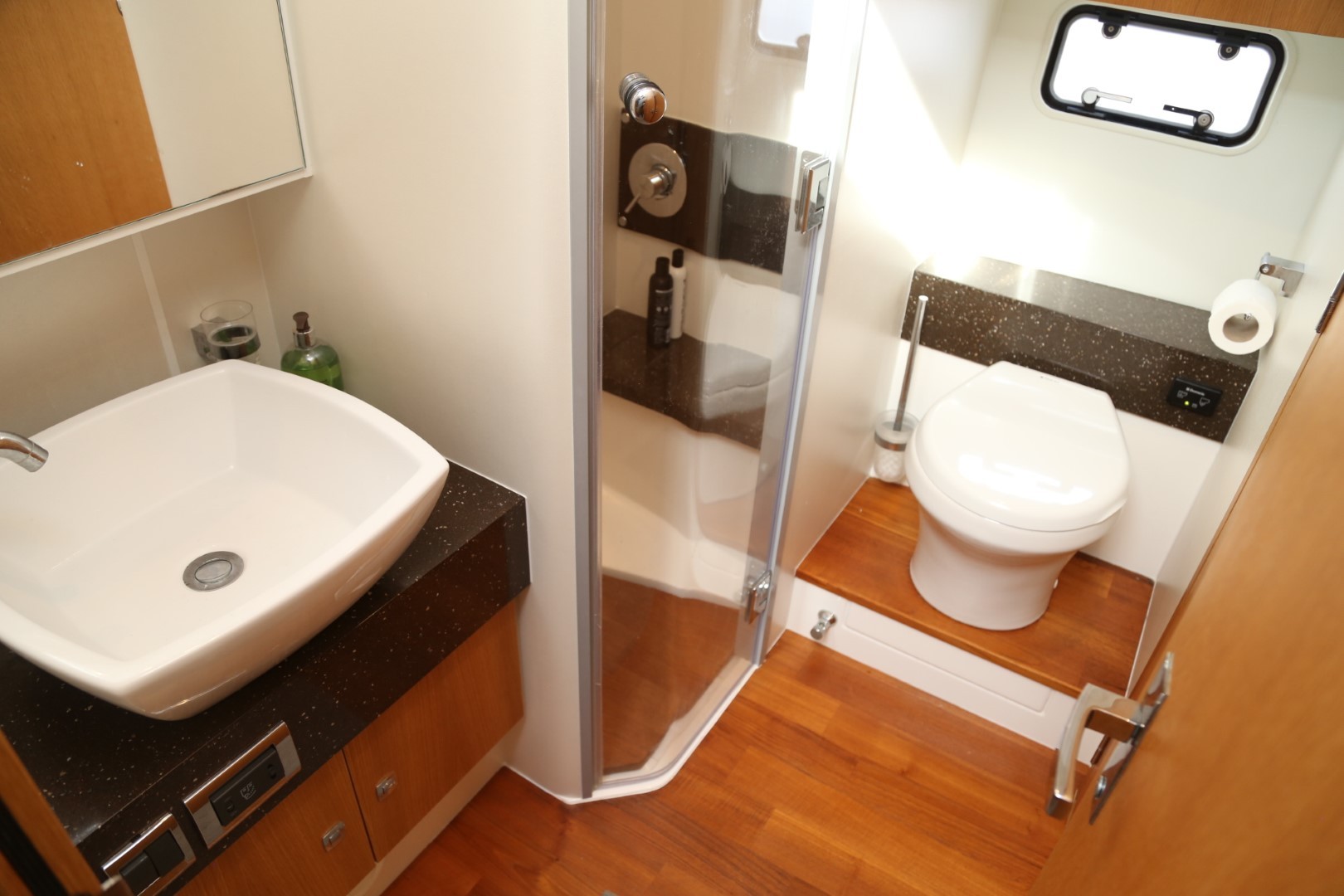 The integral bathing platform gives the boat a longer waterline length for improved performance, particularly at reduced power settings