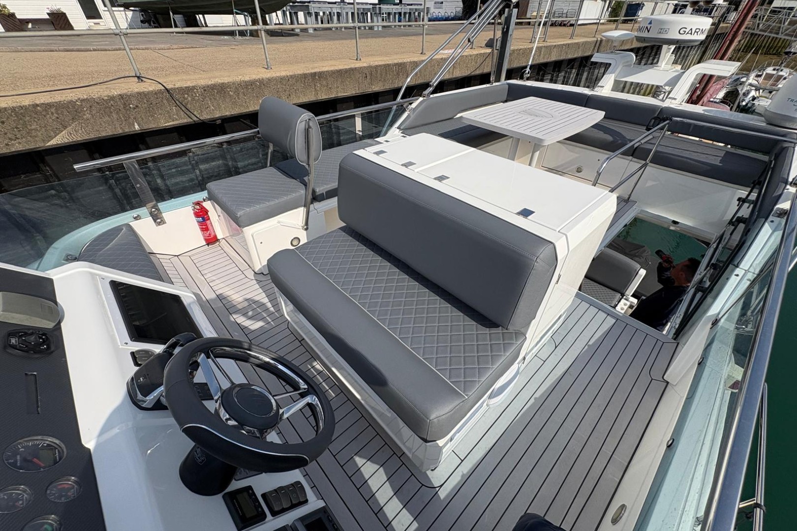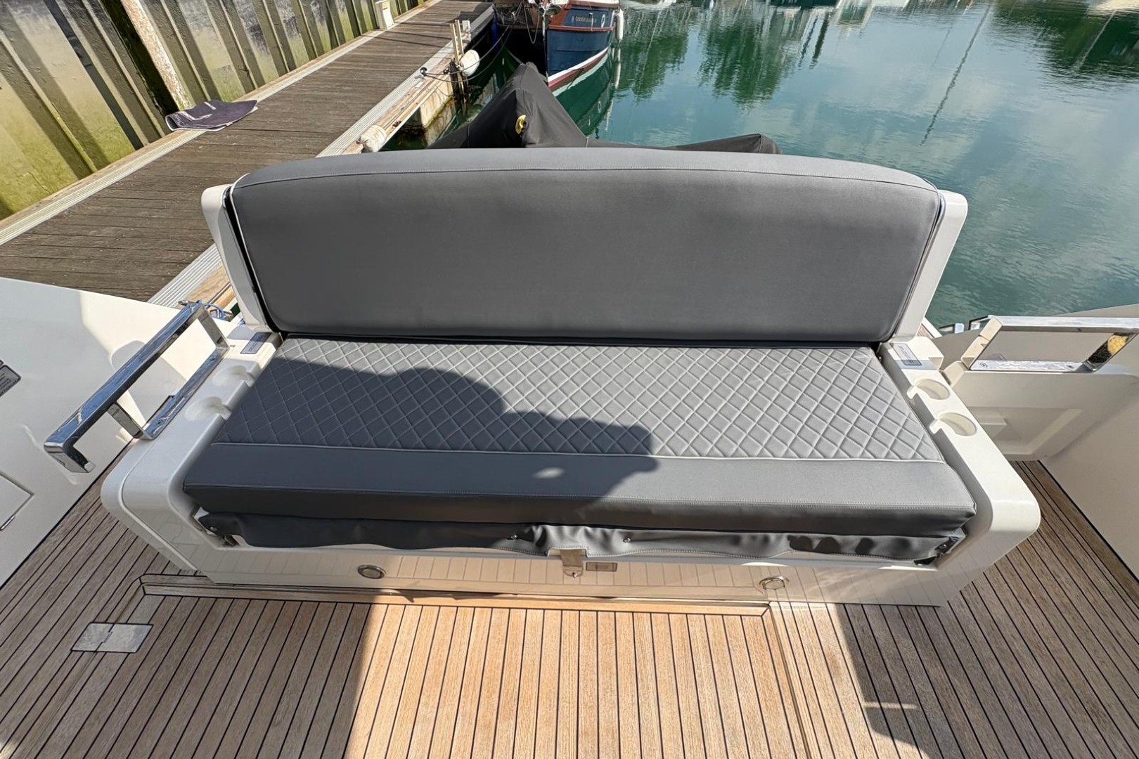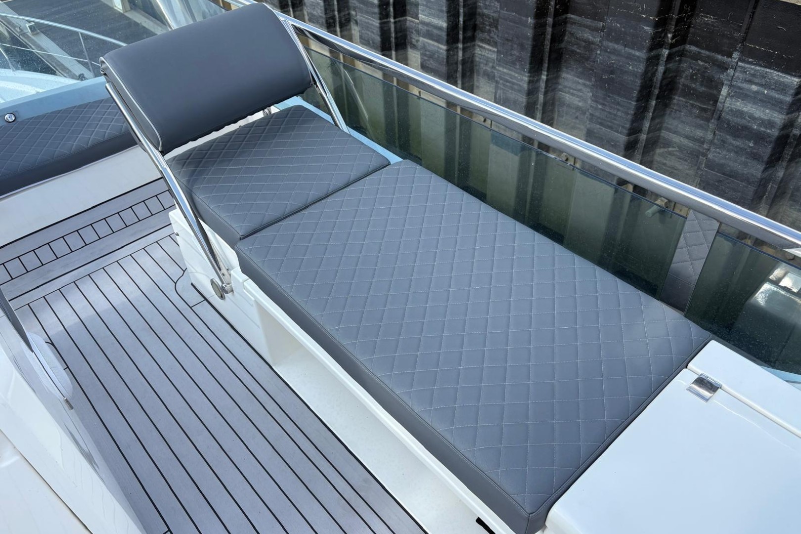 New Flybridge and Cockpit Upholstery with Cross-stitch Detailing, finished in Platinum Grey  (2025)