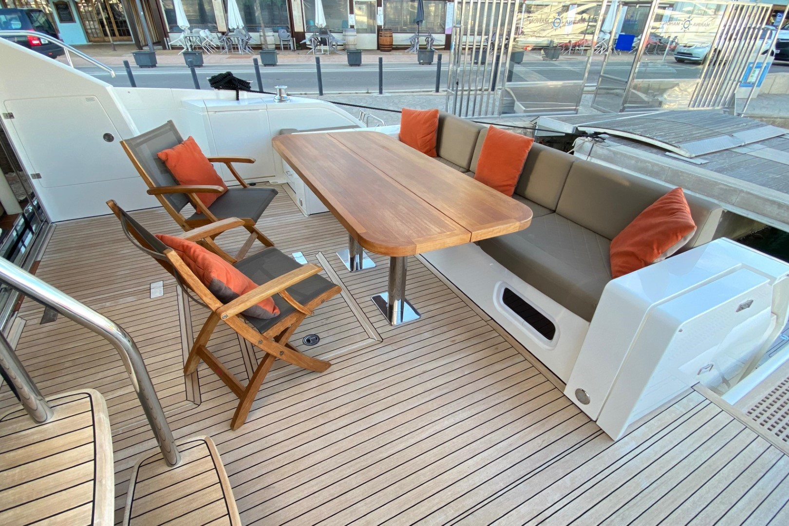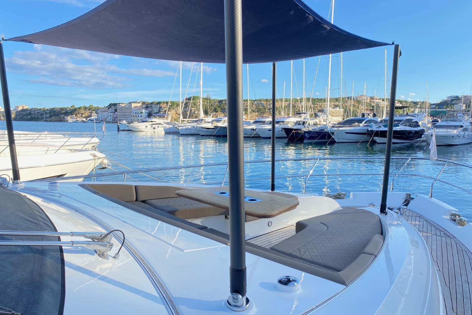 Bow seating including lighting, AV & speakers, carbon poles and sunshade