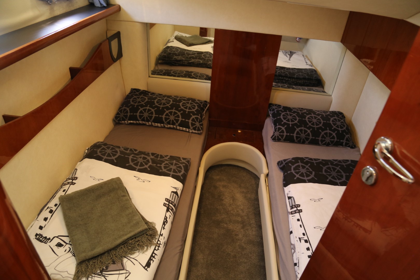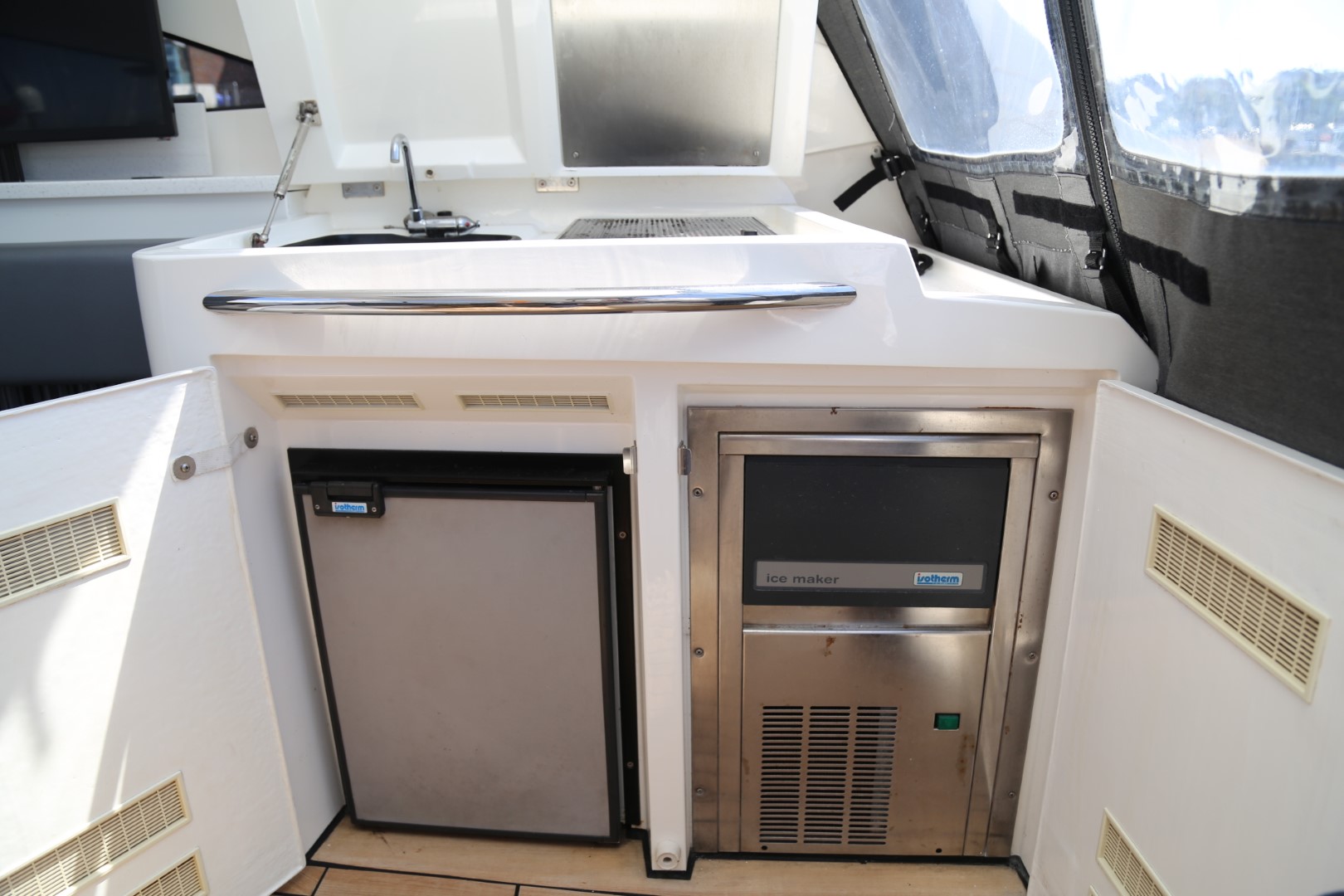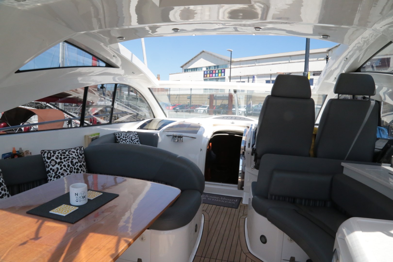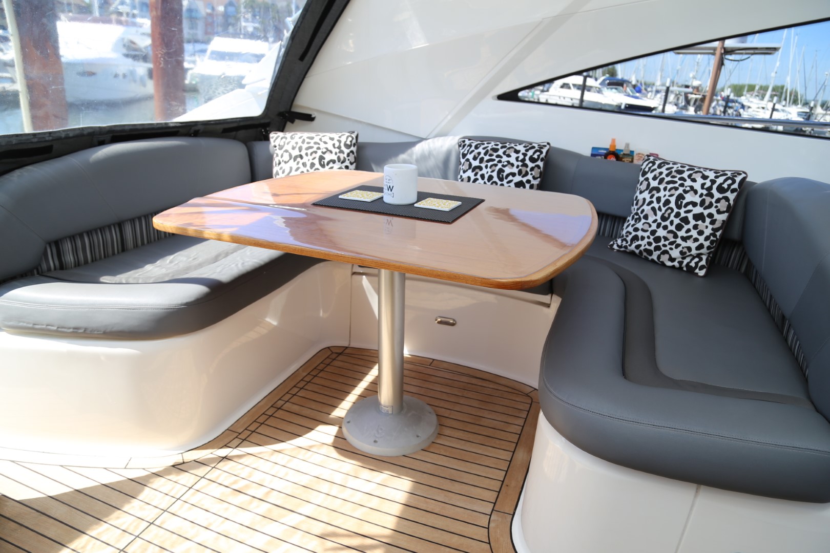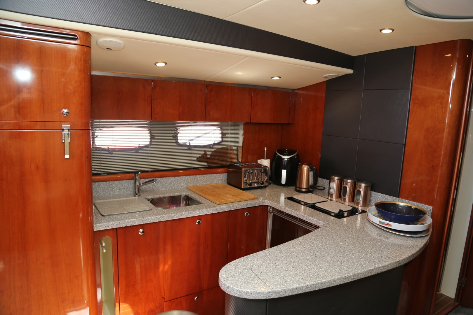 The integral bathing platform gives the boat a longer waterline length for improved performance, particularly at reduced power settings