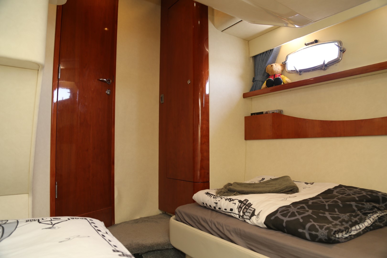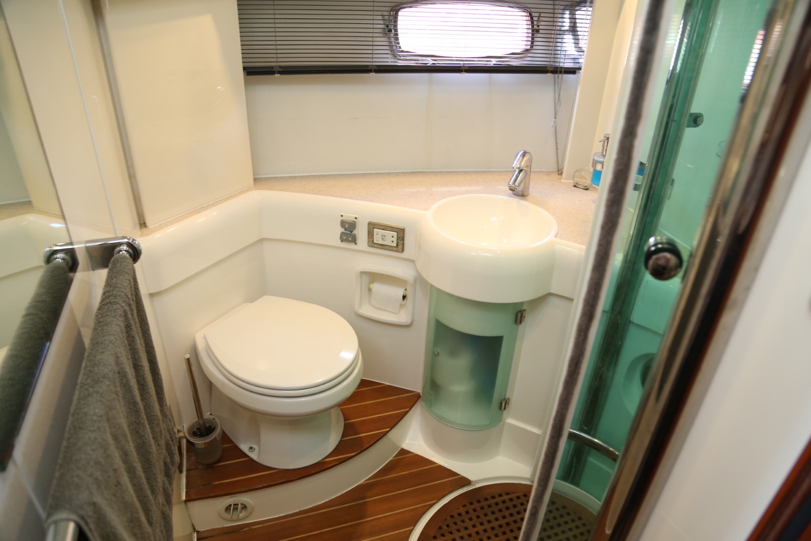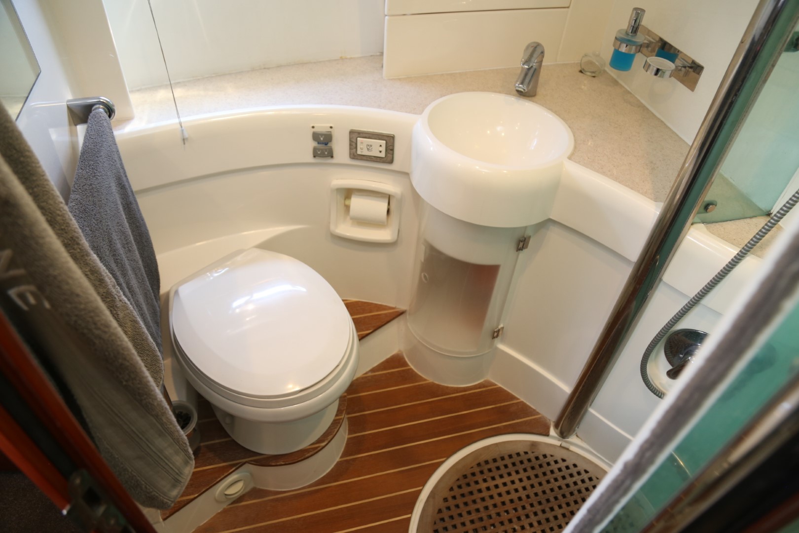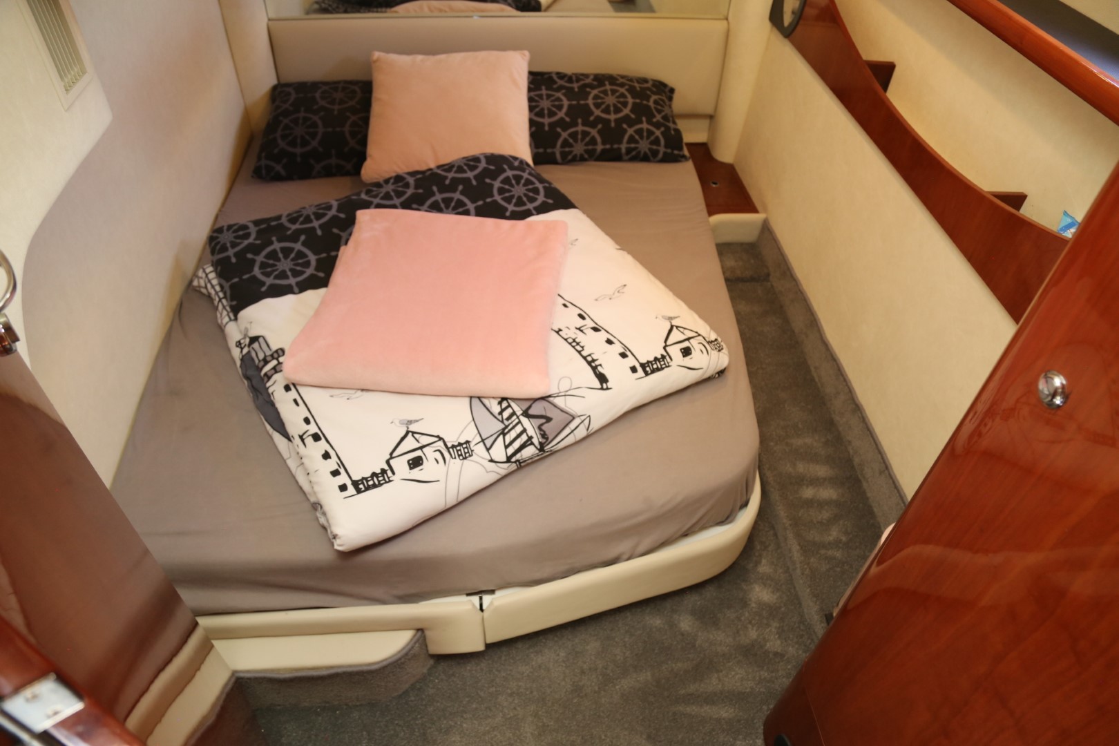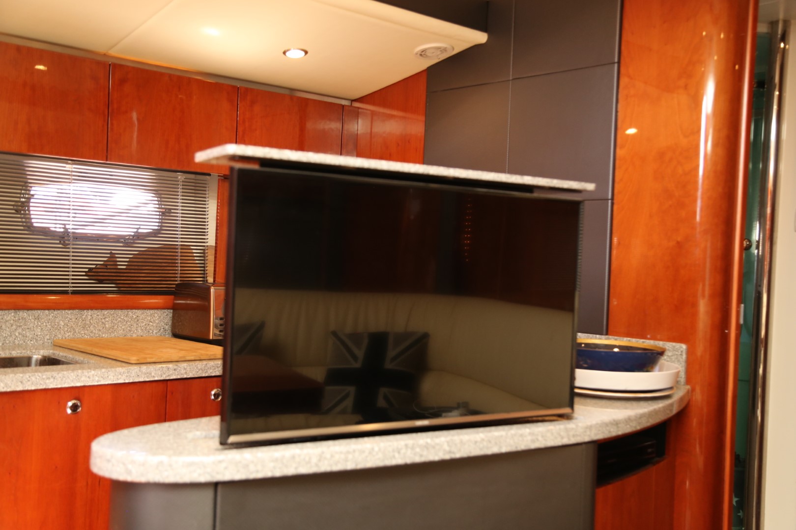 The integral bathing platform gives the boat a longer waterline length for improved performance, particularly at reduced power settings
