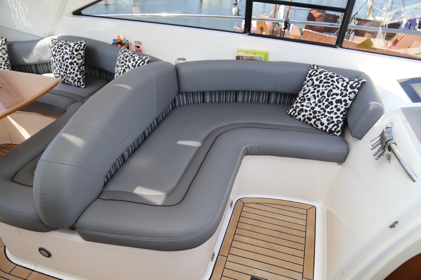 'Reticulated' non-absorbent foam cushions for forward and aft sundeck